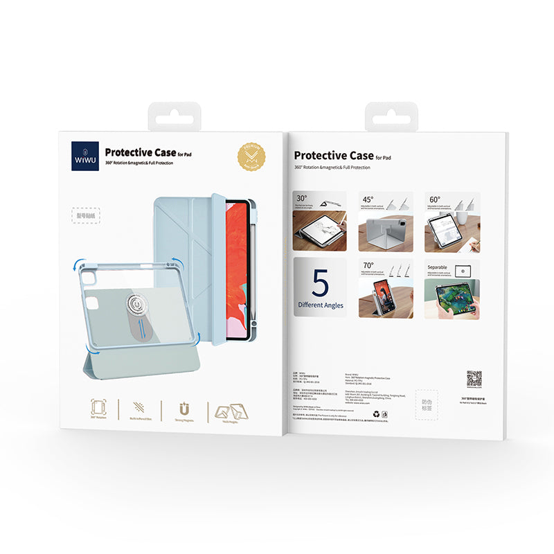 Wiwu 360° Dönebilen Tablet Kılıfı, üstün kaliteli PC ve TPU malzemelerinden üretilmiştir. Bu kılıf, tabletinizi her açıdan koruyarak darbe, çizik ve düşmelere karşı mükemmel bir savunma sağlar. Şık tasarımı ve dayanıklı yapısıyla, tabletinizi her zaman güvende tutarken estetik görünümünden ödün vermez.