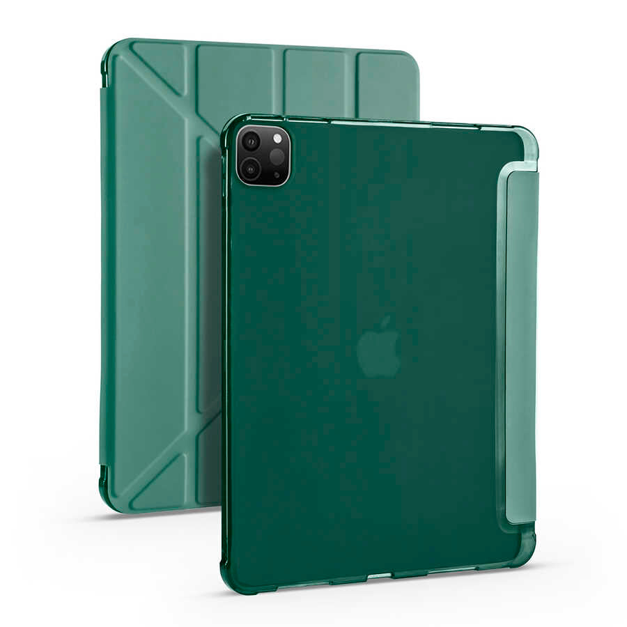 Apple iPad Pro 12.9 2020 (4.Nesil) Kılıf Zore Tri Folding Kalem Bölmeli Standlı Kılıf Koyu Yeşil