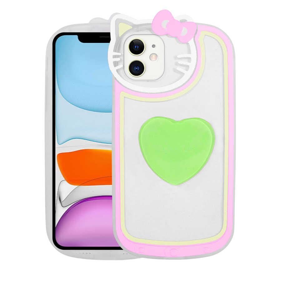 Apple iPhone 11 Kılıf Kedi Figürlü Transparan Pop Soketli Zore Ritmik Kapak Yeşil