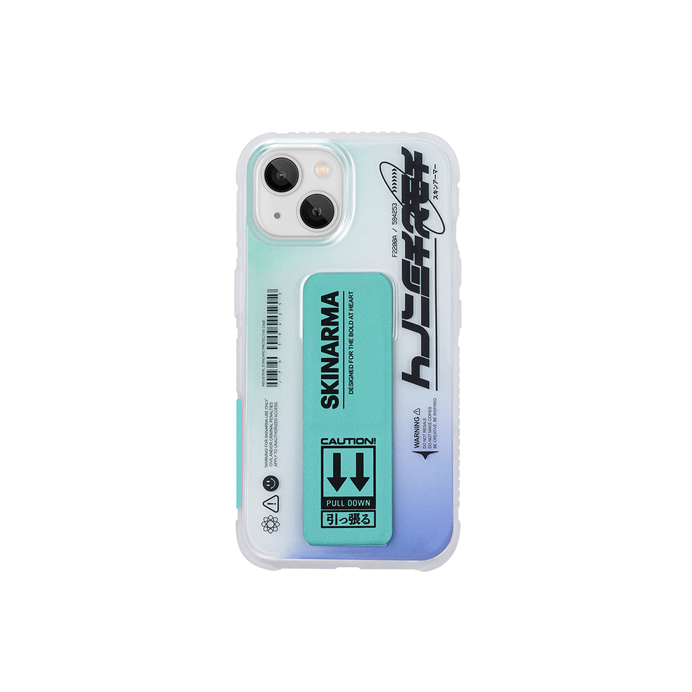Apple iPhone 13 Kılıf Skinarma Şeffaf Desenli Airbag Tasarımlı Standlı Hakko Kapak Turkuaz