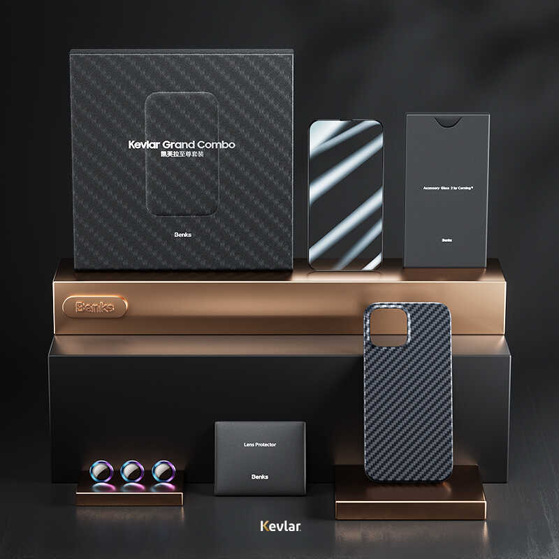 Apple iPhone 13 Pro Max Kılıf Benks Aramid Magsafe 3 in 1 Set Siyah