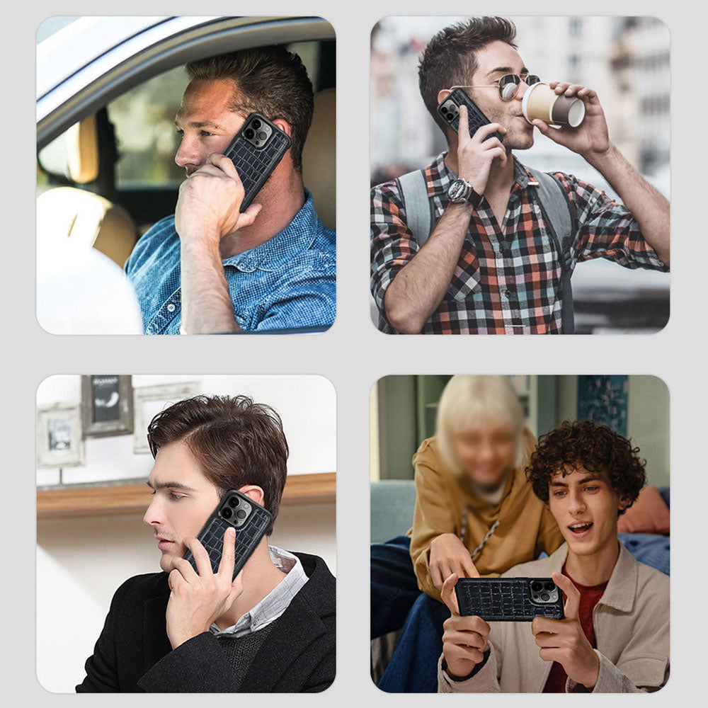 Apple iPhone 13 Pro Max Kılıf Wiwu Croco Pattern Calfskin Orjinal Deri Kapak Kahverengi