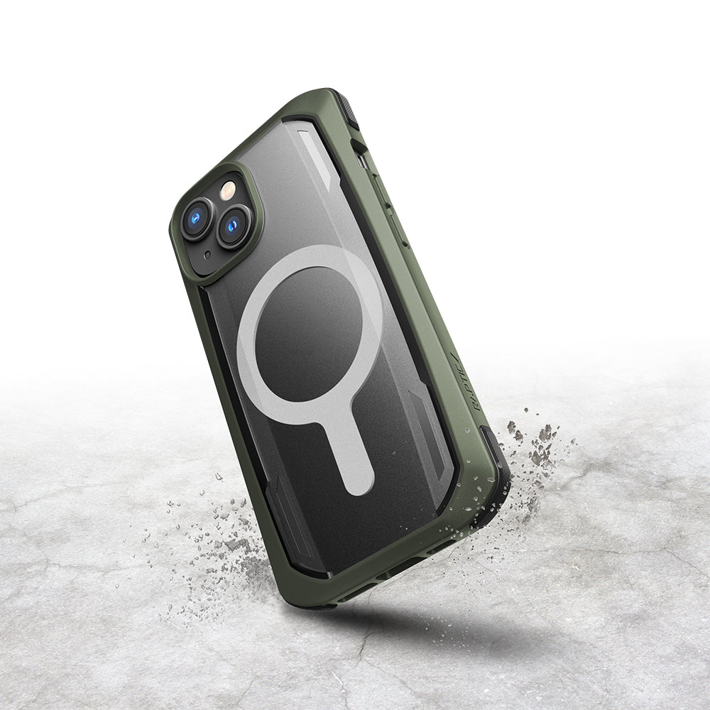Apple iPhone 14 Kılıf Magsafe Şarj Özellikli Raptic Secure Serisi Çift Kat TPU Kenarlı Şeffaf Arka Yüzeyli Kapak Yeşil