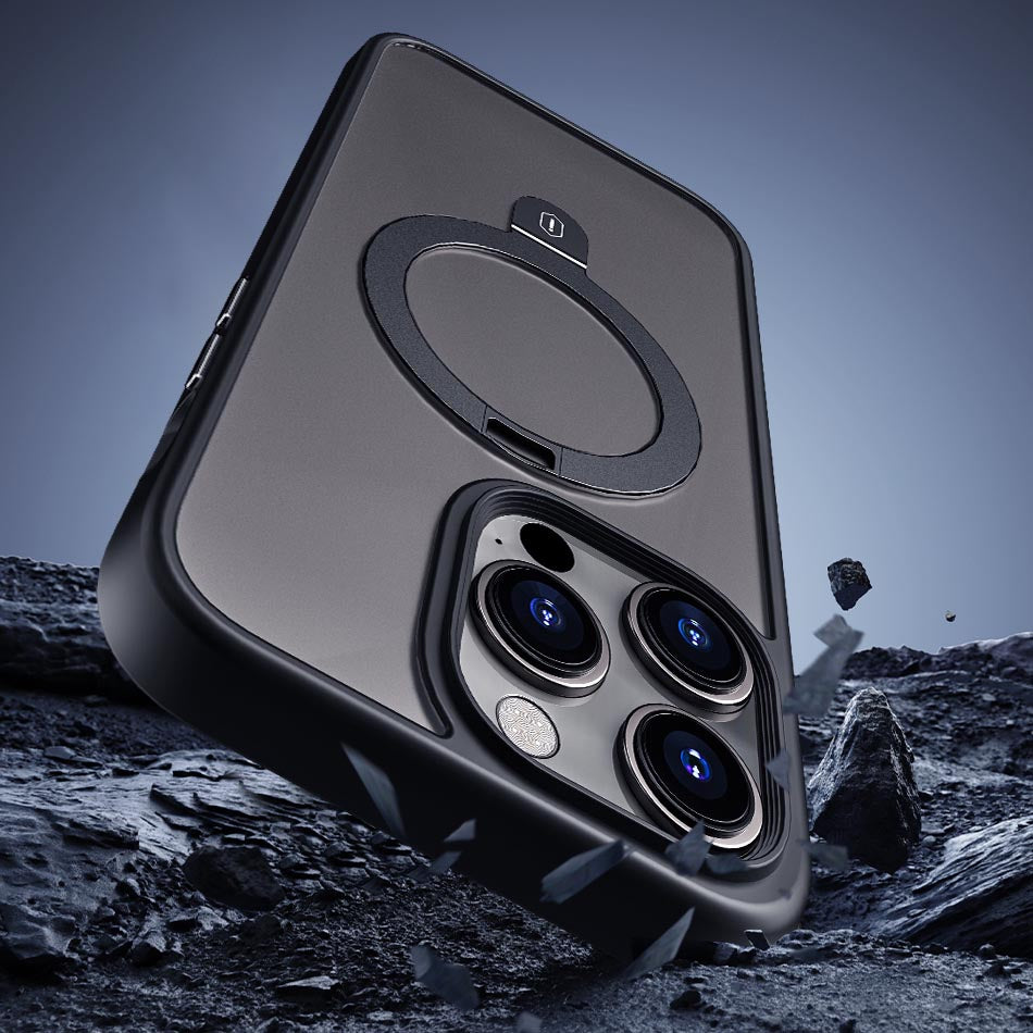 Apple iPhone 14 Kılıf Wiwu ZMM-010 Magsafe Şarj Özellikli Parmak İzi Bırakmayan Mat Transparan Standlı Kapak Siyah