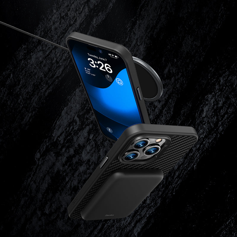 iPhone 14 Plus Kılıf Karbon Fiber Magsafe Şarj Özellikli Benks Hybrid ArmorPro 1500D Kevlar Kapak