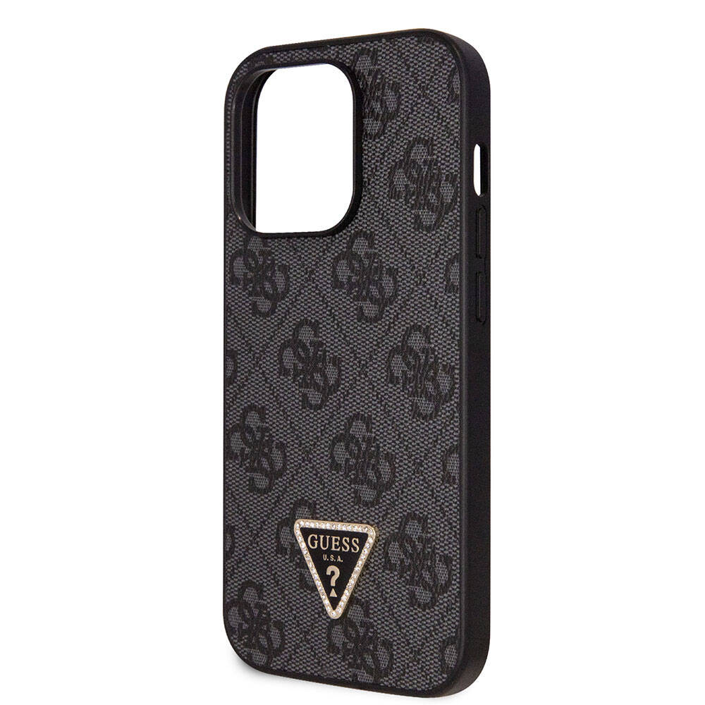 Apple iPhone 14 Pro Kılıf Guess Orjinal Lisanslı PU Deri Taşlı Üçgen Logo 4G Desenli Kapak Siyah