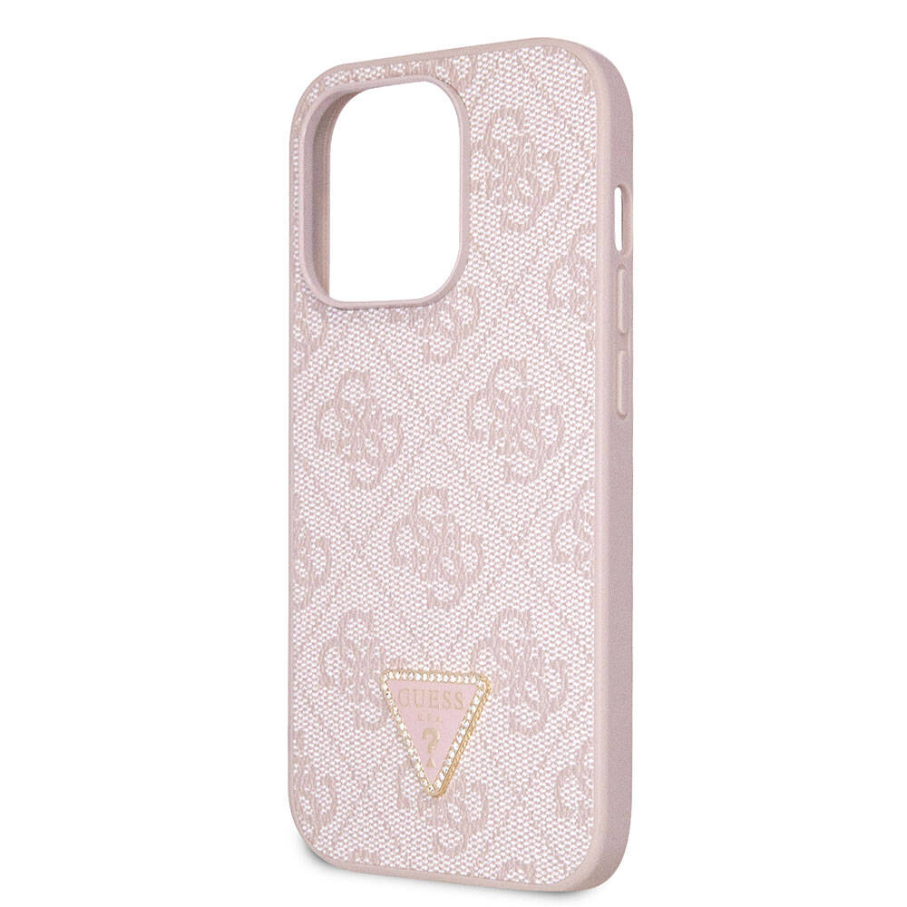 Apple iPhone 14 Pro Kılıf Guess Orjinal Lisanslı PU Deri Taşlı Üçgen Logo 4G Desenli Kapak