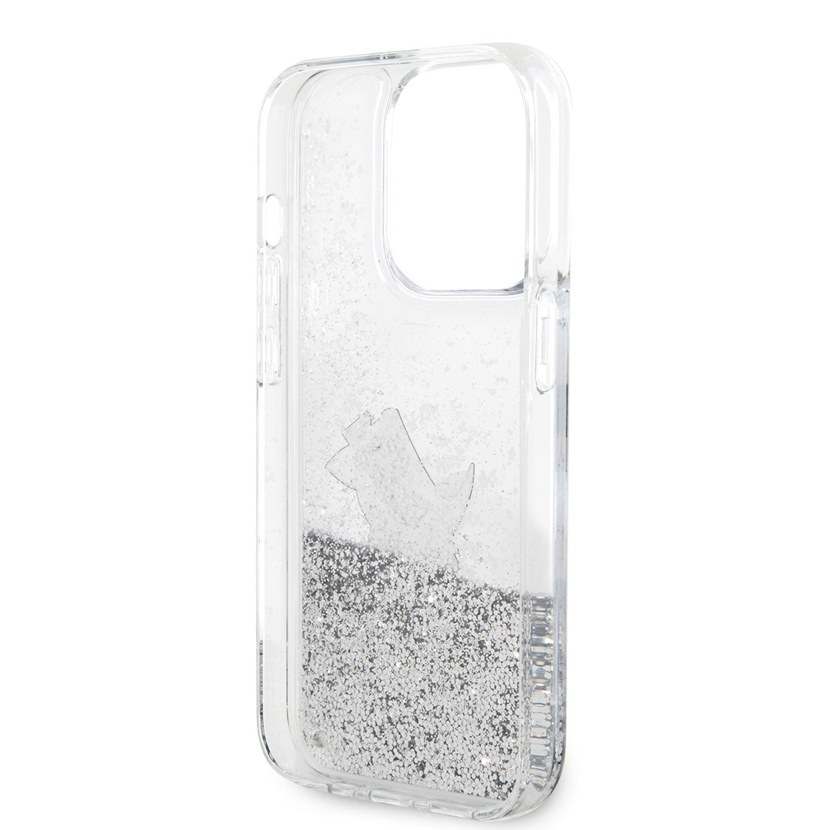 Apple iPhone 14 Pro Kılıf Karl Lagerfeld Sıvılı Simli Choupette Dizayn Kapak Gümüş