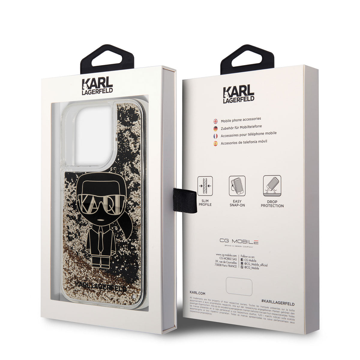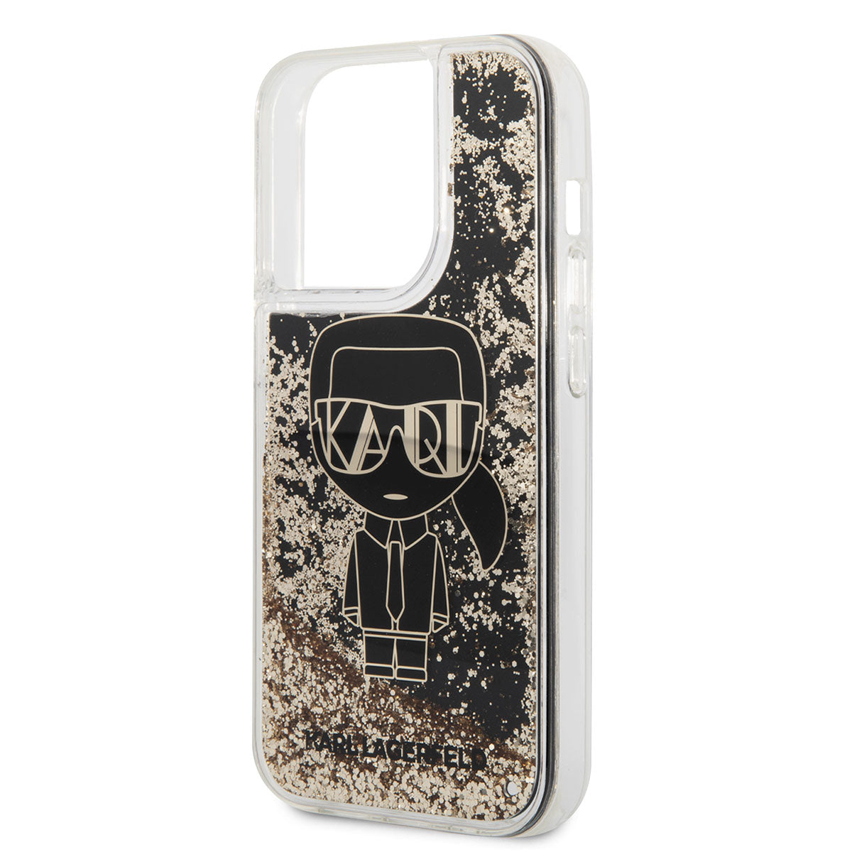 Apple iPhone 14 Pro Kılıf Karl Lagerfeld Sıvılı Simli Gatsby Dizayn Kapak Siyah