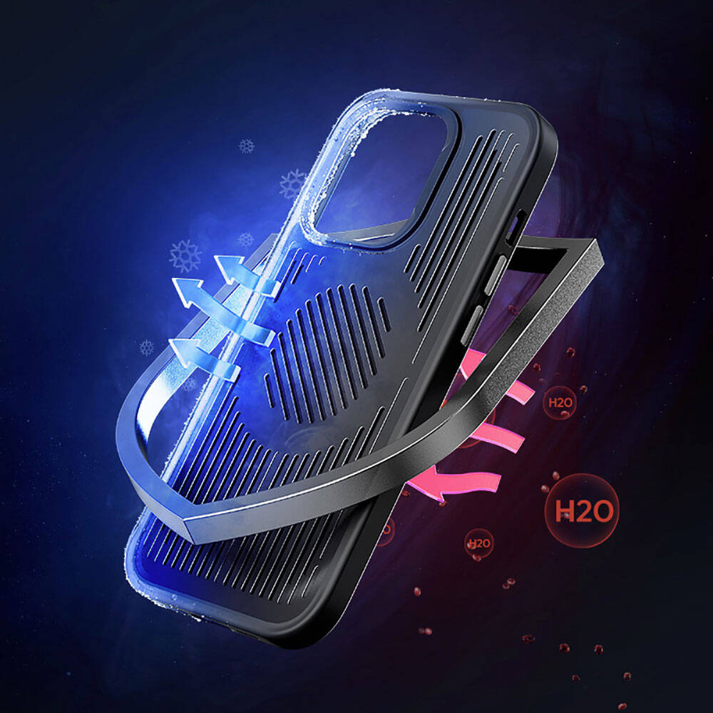 MagSafe destekli bu oyuncu kılıfı, hızlı soğutma, şok ve düşme direnci sunar. Özel Drop Resistance (düşme direnci) katmanı ile şimdi daha güçlü. Termal silikon katmanı, ısı dağılım materyali katmanı, nefes alabilen toz geçirmez kumaş katmanı ve düşmeye dayanıklı arka levha katmanı ile çok katmanlı koruma sağlar. Günlük kullanımda cihazınızın düşme ve darbelere karşı korunmasını sağlayarak, uzun ömürlü kullanım sunar. Metal tuşlar ve engelsiz oyun için yerleşik tasarımı, kullanım kolaylığı ve pratiklik sağlar.