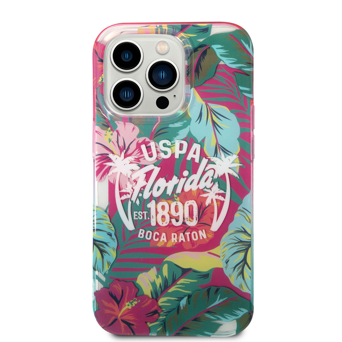 Apple iPhone 14 Pro Kılıf U.S. POLO ASSN. Renkli Yaprak Baskılı Dizayn Kapak Turuncu