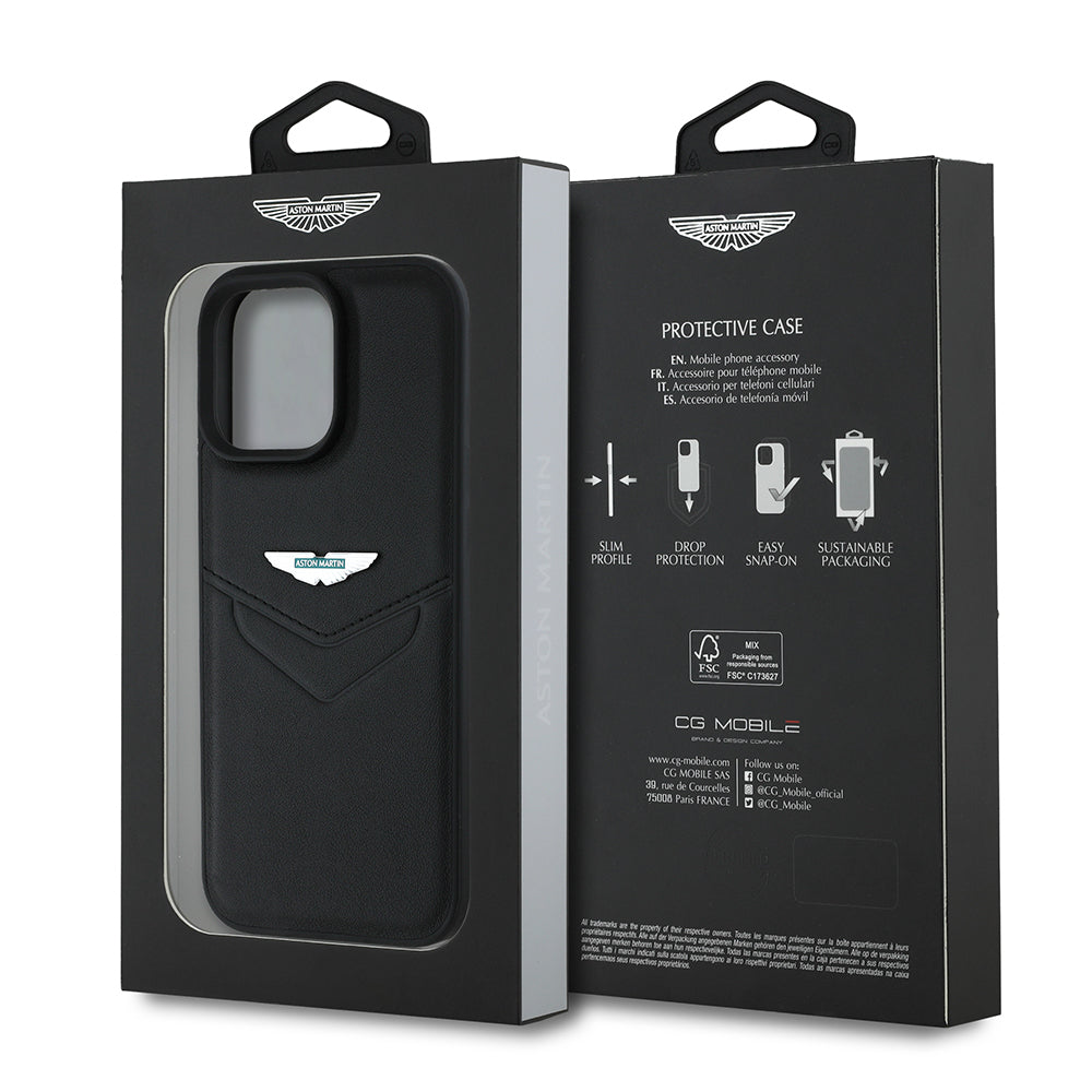 Apple iPhone 14 Pro Max Kılıf Aston Martin Orjinal Lisanslı Victory Dizayn PU Deri Metal Logolu Kapak Siyah