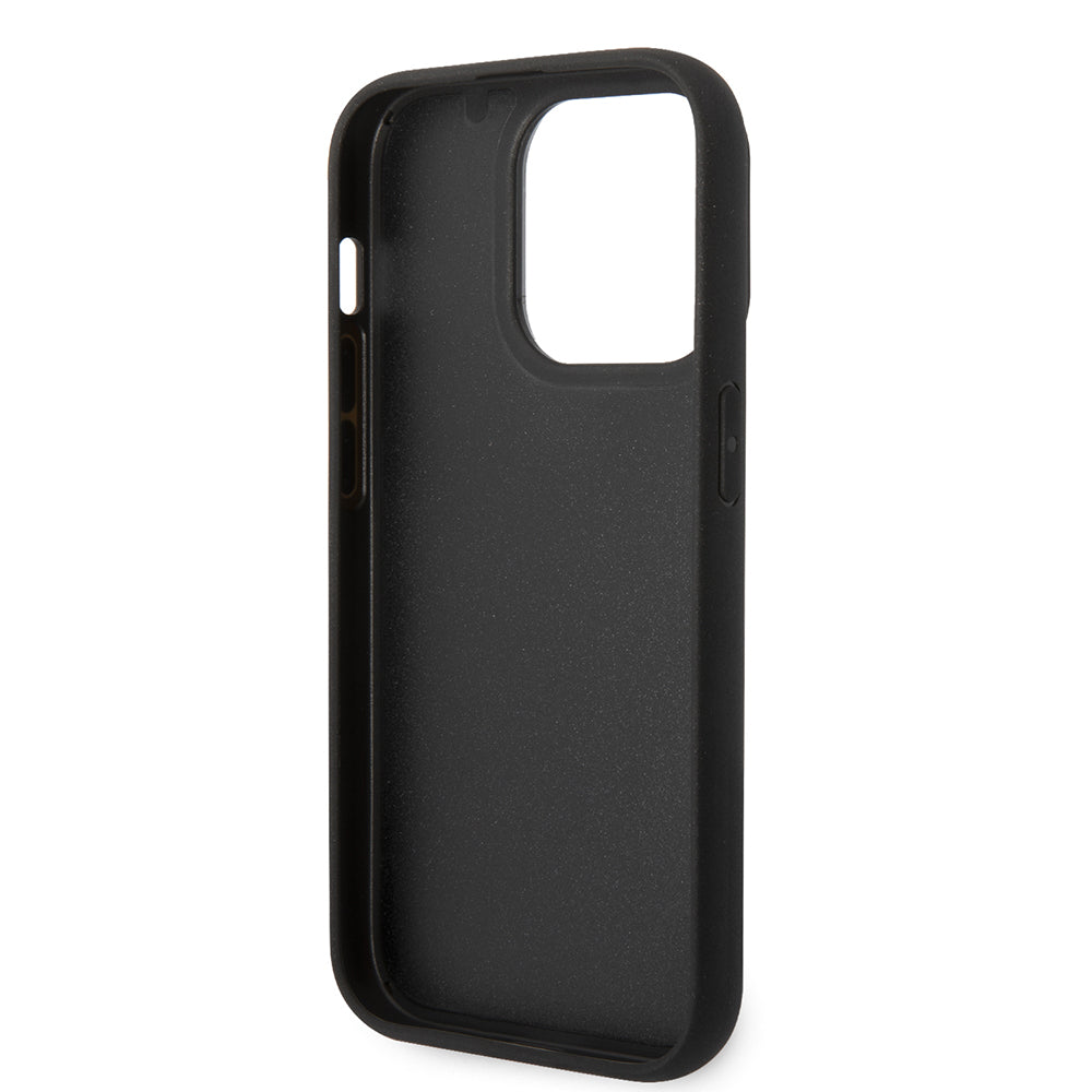 Apple iPhone 14 Pro Max Kılıf Ferrari Orjinal Lisanlı Klasik Metal Logolu Karbon Şerit Desenli Kapak Siyah