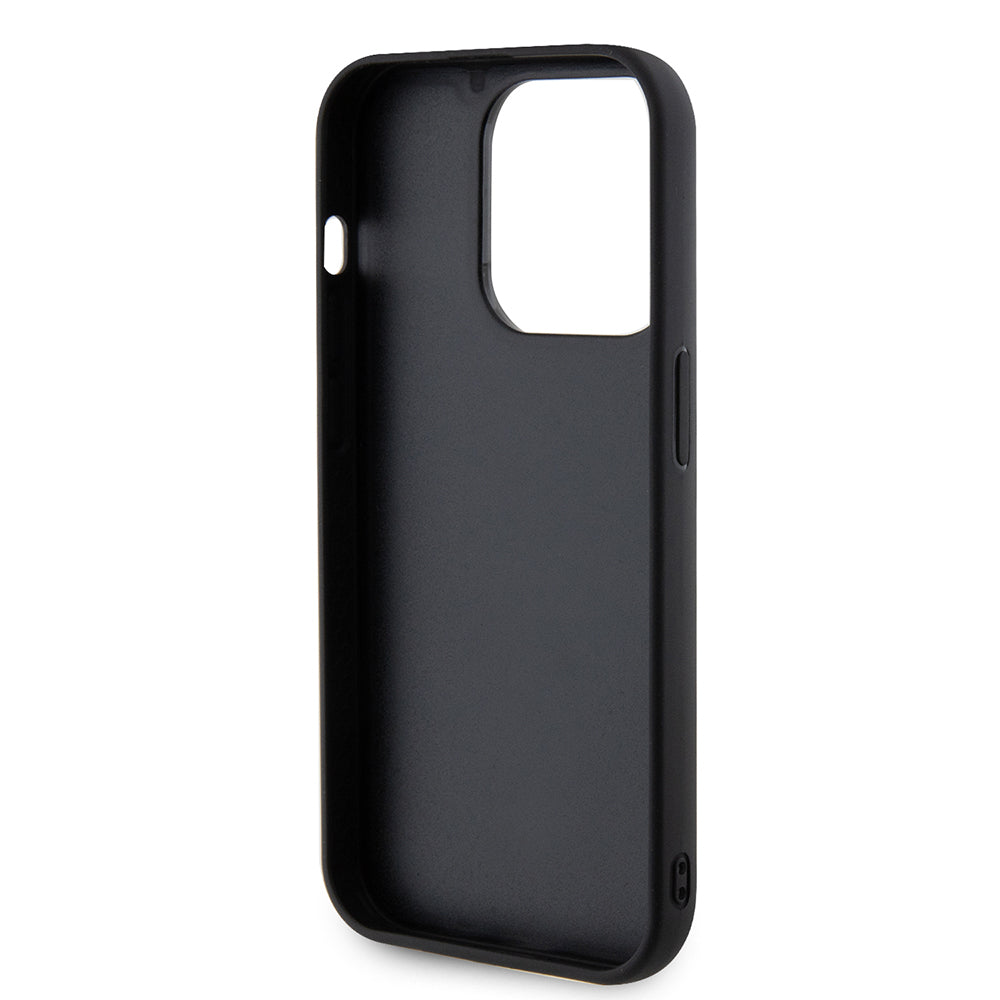 Apple iPhone 14 Pro Max Kılıf Guess Orjinal Lisanslı PU Deri Metal Yazı Logolu Kapitone Kapak Siyah