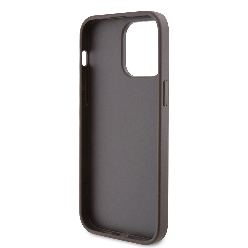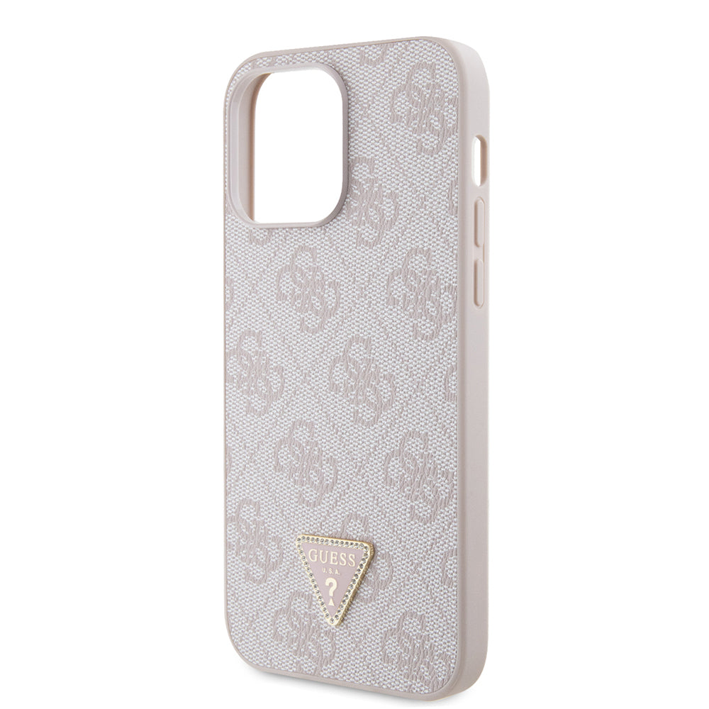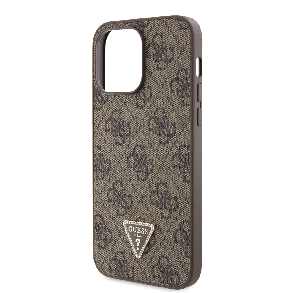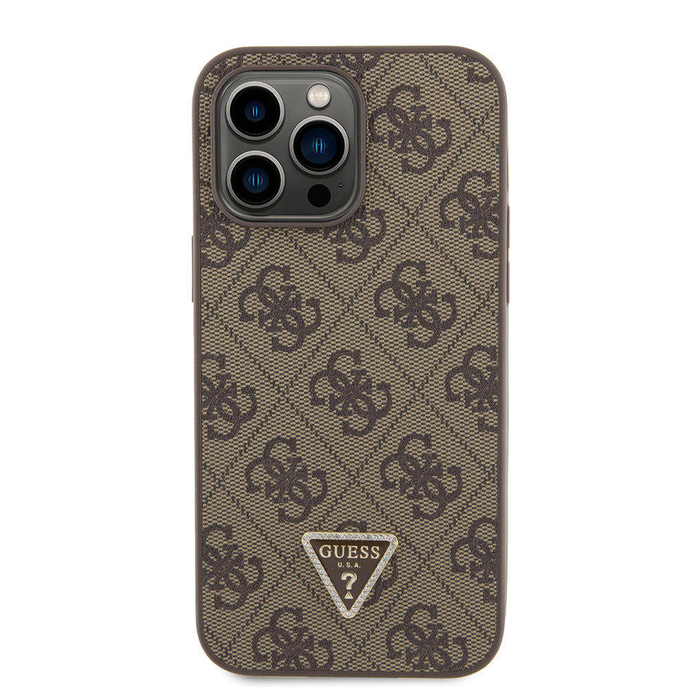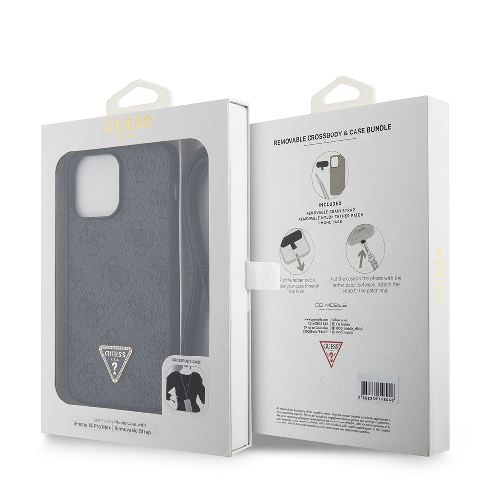 iPhone 14 Pro Max Kılıf Guess Orjinal Lisanslı PU Deri Taşlı Metal Üçgen Logolu Çapraz Vücut Askılı 4G Desenli Kapak