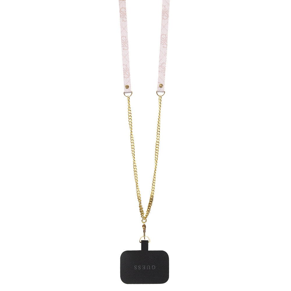 iPhone 14 Pro Max Kılıf Guess Orjinal Lisanslı PU Deri Taşlı Metal Üçgen Logolu Çapraz Vücut Askılı 4G Desenli Kapak