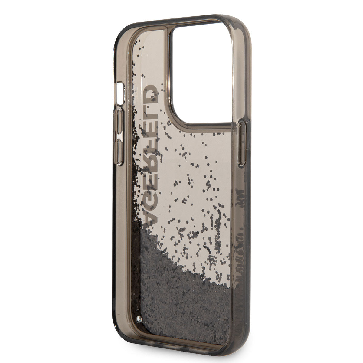 Apple iPhone 14 Pro Max Kılıf Karl Lagerfeld Sıvılı Simli Elong Dizayn Kapak Pembe