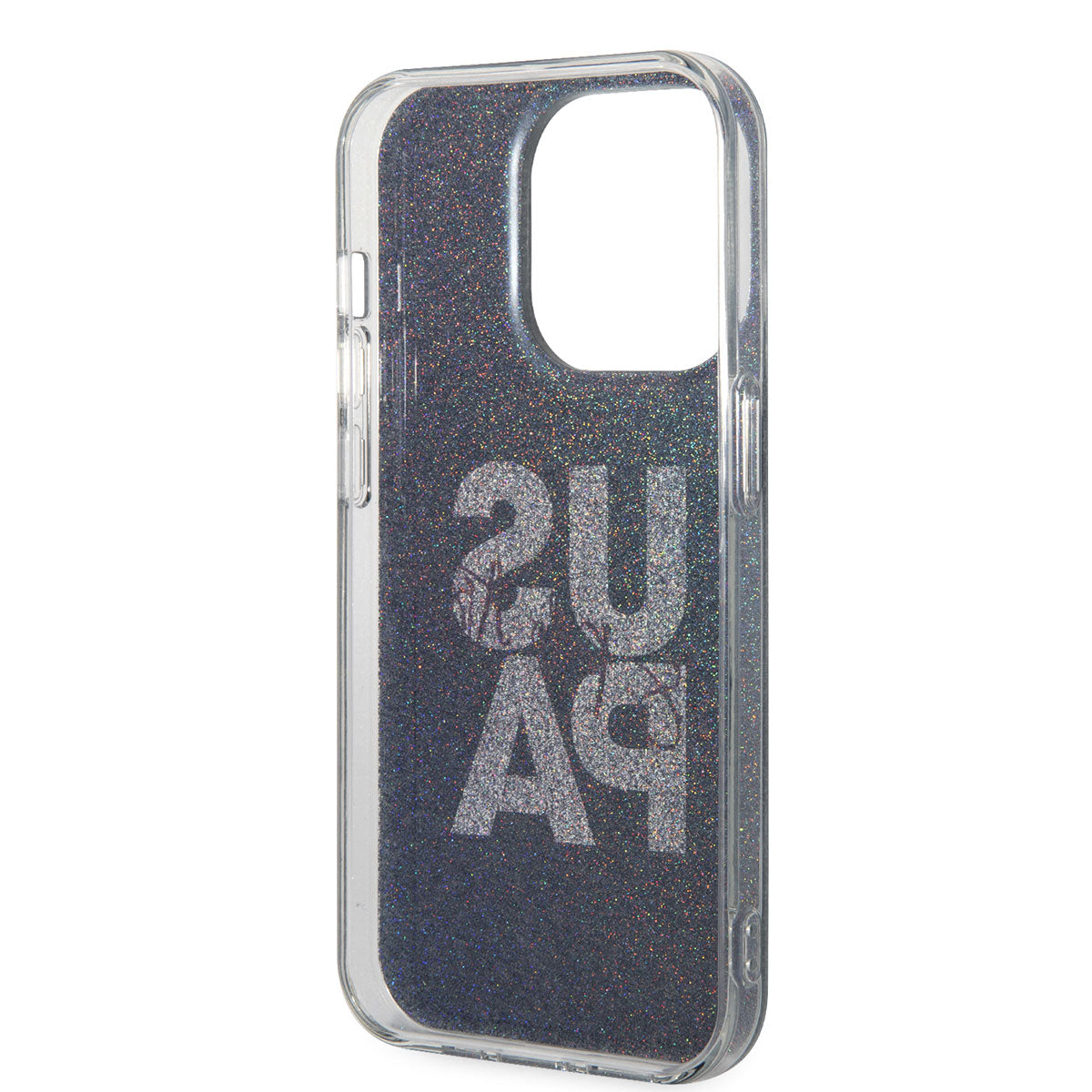 Apple iPhone 14 Pro Max Kılıf U.S. POLO ASSN. Simli Parlak Alfabe Tasarım Kapak Mavi