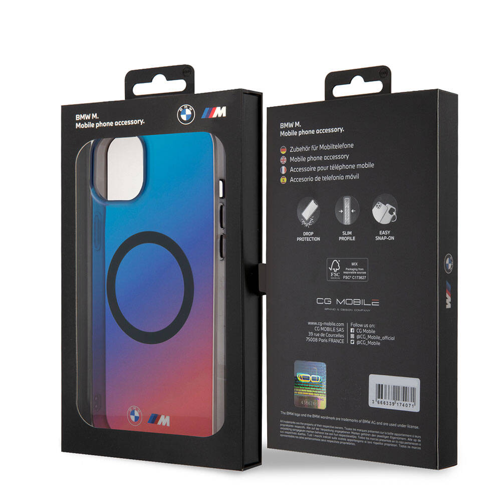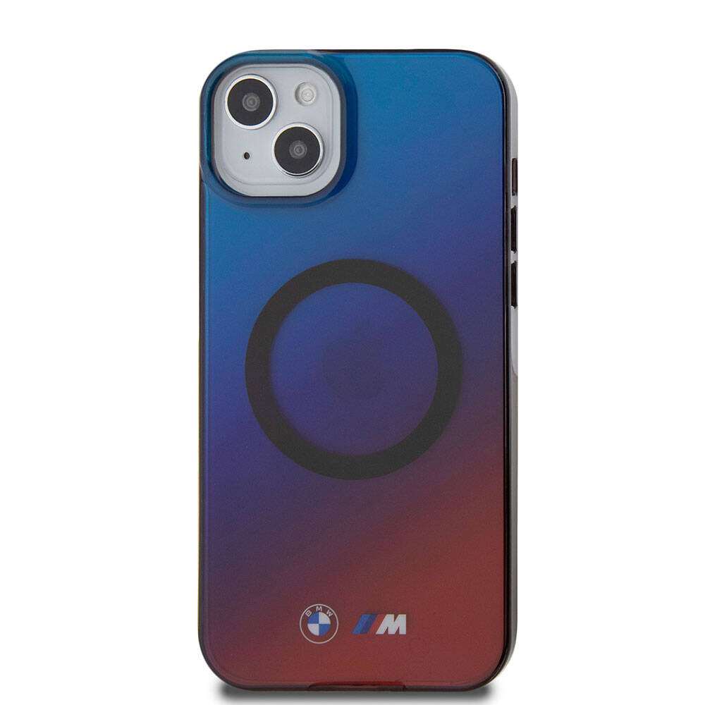 Apple iPhone 15 Plus Kılıf BMW Magsafe Şarj Özellikli Transparan Renk Geçişli Dizayn Orjinal Lisanslı Kapak Mavi-Kırmızı