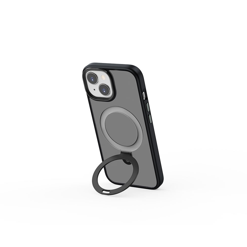 Apple iPhone 15 Plus Kılıf Wiwu ZMM-010 Magsafe Şarj Özellikli Mat Arka Yüzey Standlı Kapak Siyah