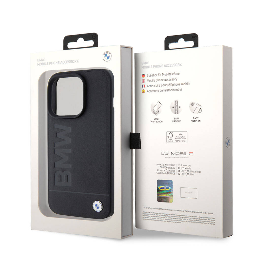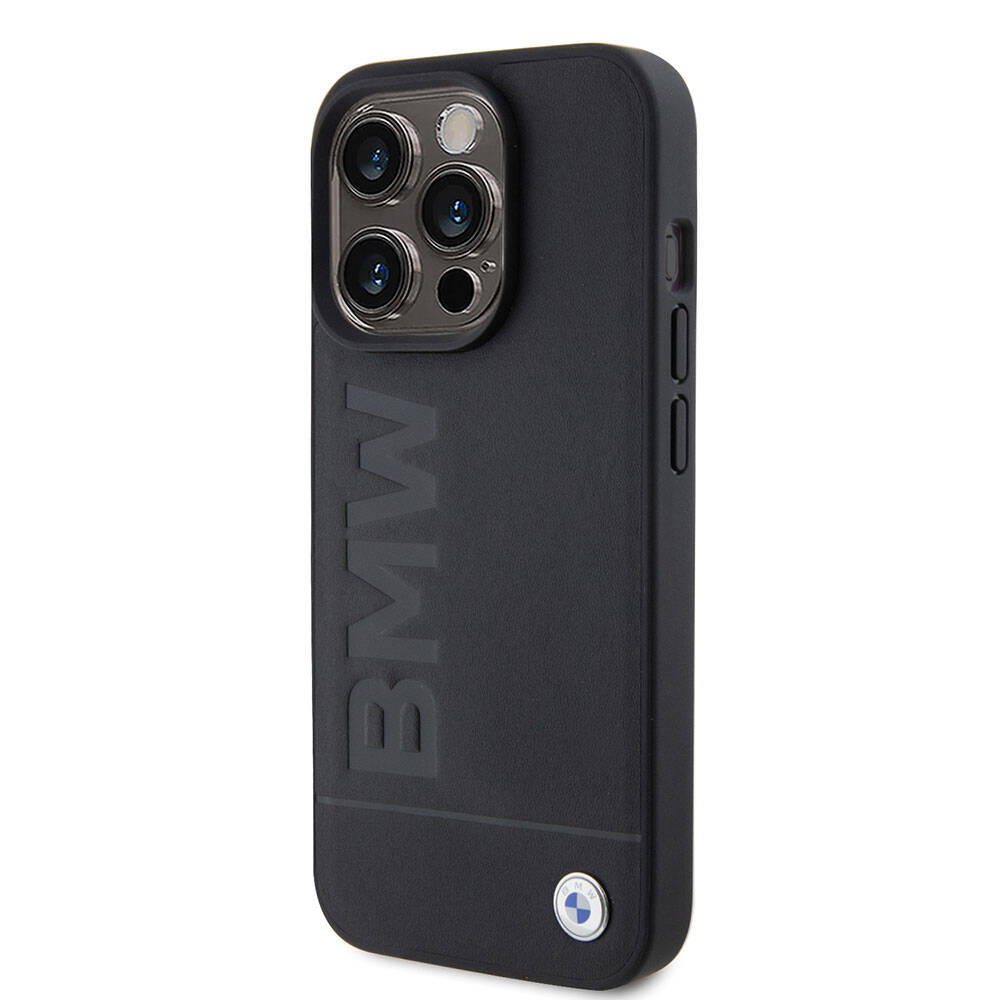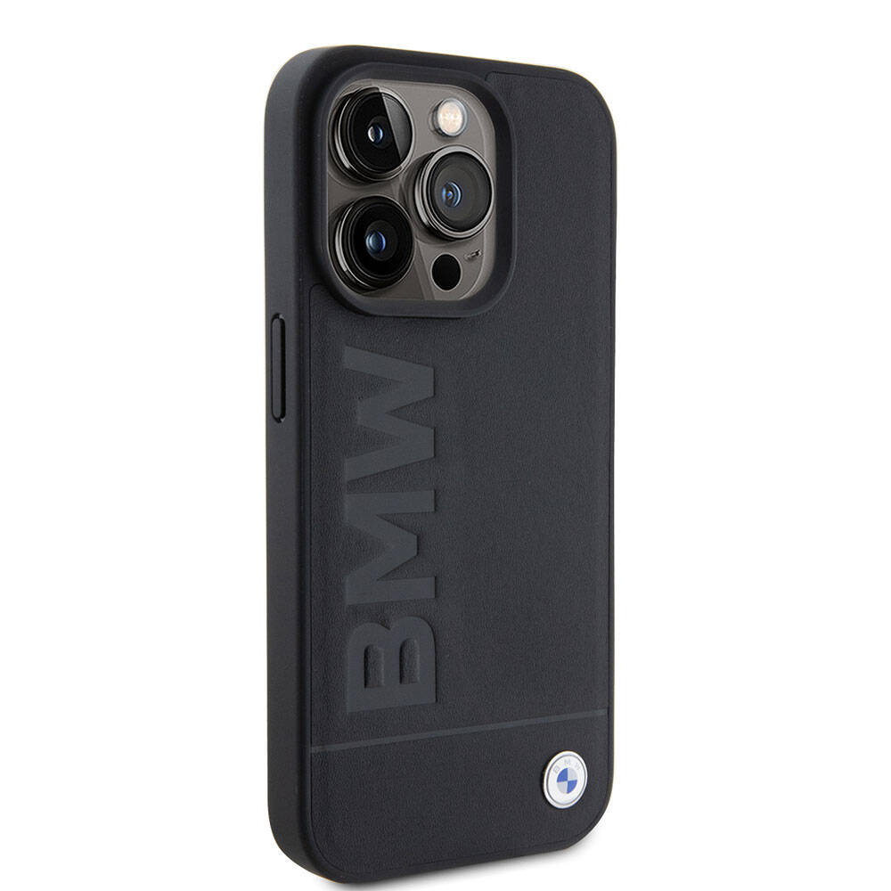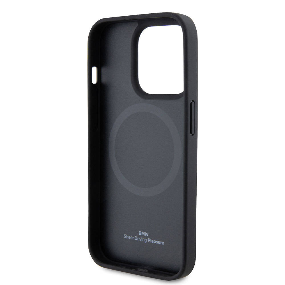 Apple iPhone 15 Pro Kılıf BMW Orjinal Lisanslı Magsafe Şarj Özellikli Sıcak Damga Logolu Deri Kapak Siyah