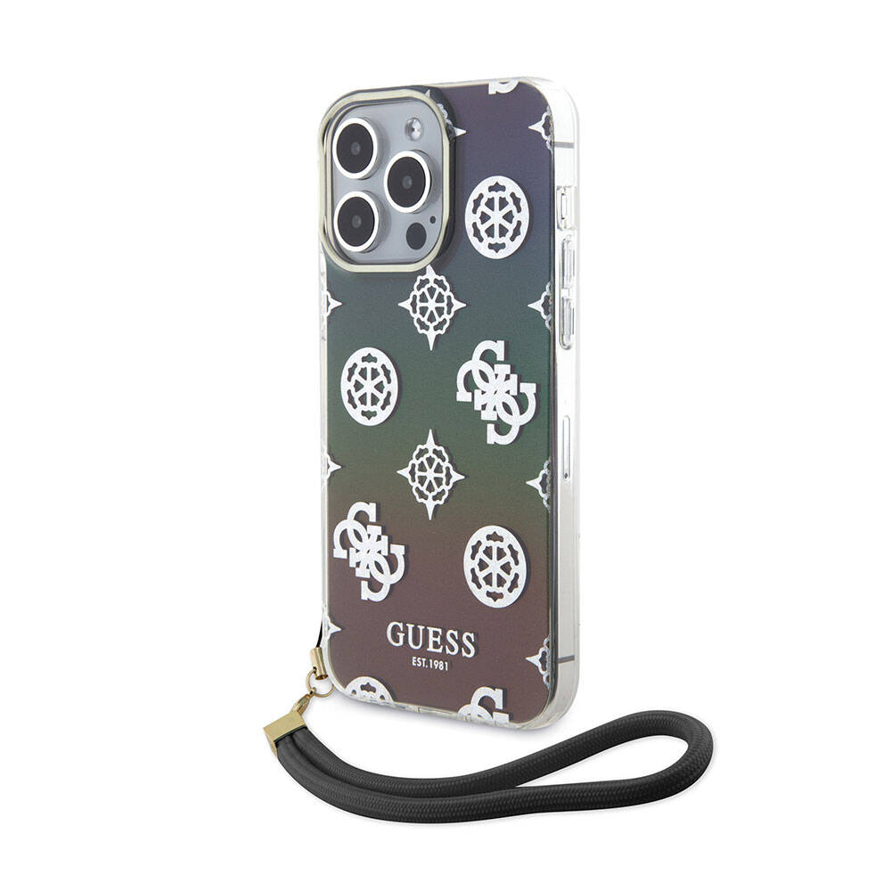 Apple iPhone 15 Pro Kılıf Guess Orjinal Lisanslı Desenli Yazı Logolu Askı İpli Holografik Glitter Peony Kapak