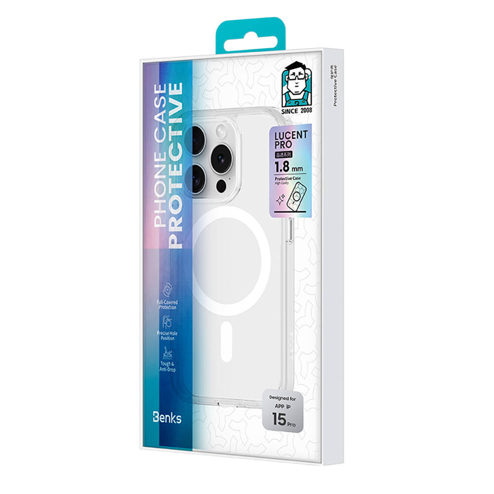 iPhone 15 Pro Kılıf Magsafe Şarj Özellikli Airbagli Şeffaf Benks LucentPro Serisi Kapak
