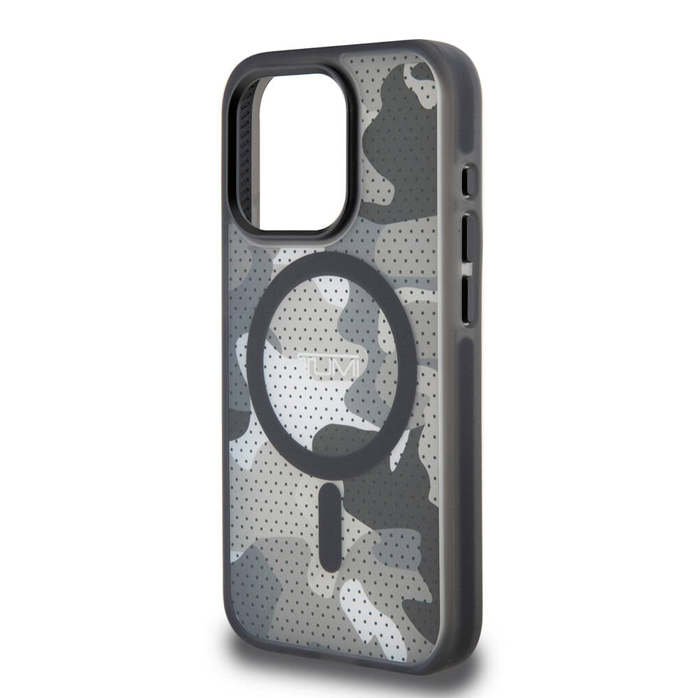 Apple iPhone 15 Pro Kılıf TUMI Orjinal Lisanslı Magsafe Şarj Özellikli Buzlanmış Saydam Ağ Kamuflajı Desenli Kapak Siyah