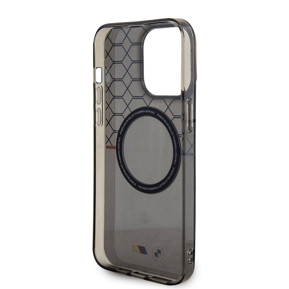 Apple iPhone 15 Pro Max Kılıf BMW Magsafe Şarj Özellikli Transparan M Dizayn Orjinal Lisanslı Kapak Gri
