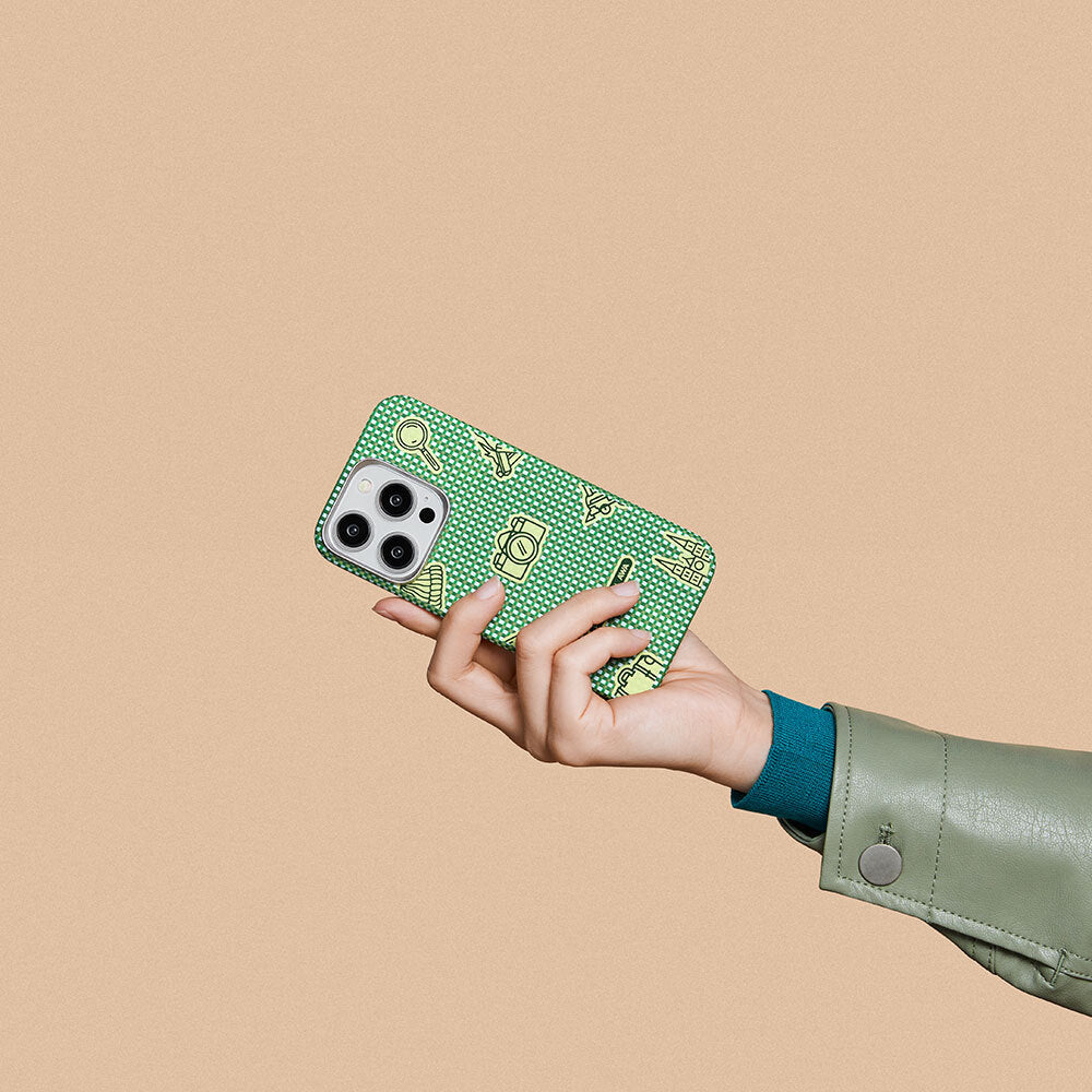 Vakum yüksek sıcaklık kalıplama işlemiyle üretilen bu aramid fiber kılıf, benzersiz bir dokuya sahip olup, kaymaz ve cilt dostu bir tutuş sunar. PITAKA’nın ince işçiliğiyle elde edilen doku, kılıfın görselliğine estetik bir derinlik katarken aynı zamanda konforlu bir kullanım sağlar.