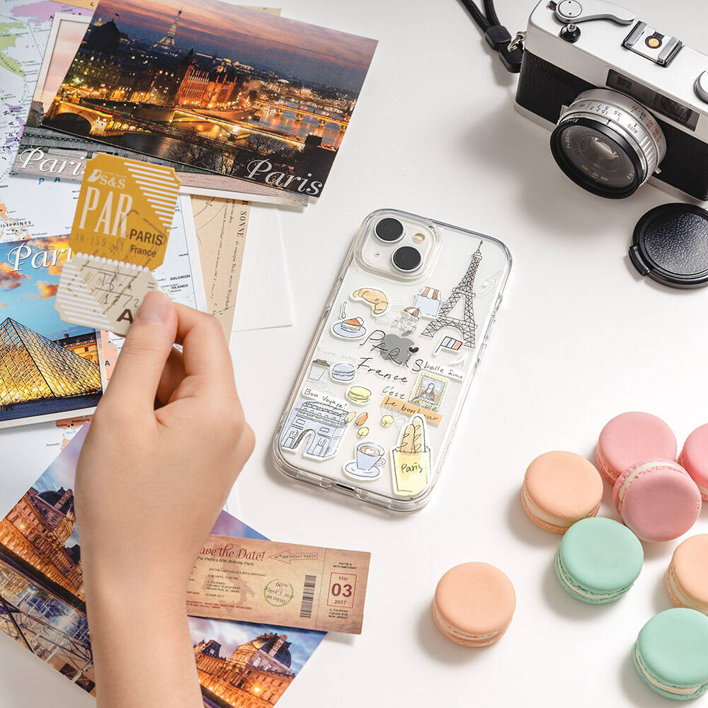 iPhone 15 Pro Max Kılıf Magsafe Şarj Özellikli Çizim Desenli Şok Önleyicili Şeffaf Lisanslı Switcheasy City-M Paris Kapak
