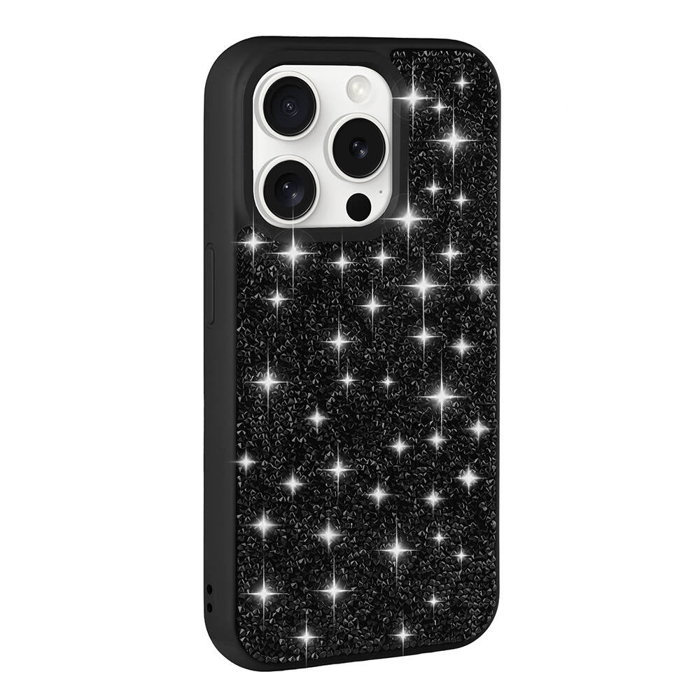 Apple iPhone 15 Pro Max Kılıf Parlak Taşlı Tasarım Zore Pırlanta Kapak Siyah