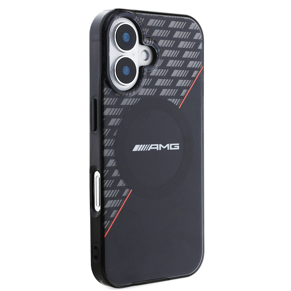 Apple iPhone 16 Kılıf AMG Orjinal Lisanslı Magsafe Şarj Özellikli Çift Katmanlı Kırmızı Çapraz Çizgili Kapak Siyah-Kırmızı