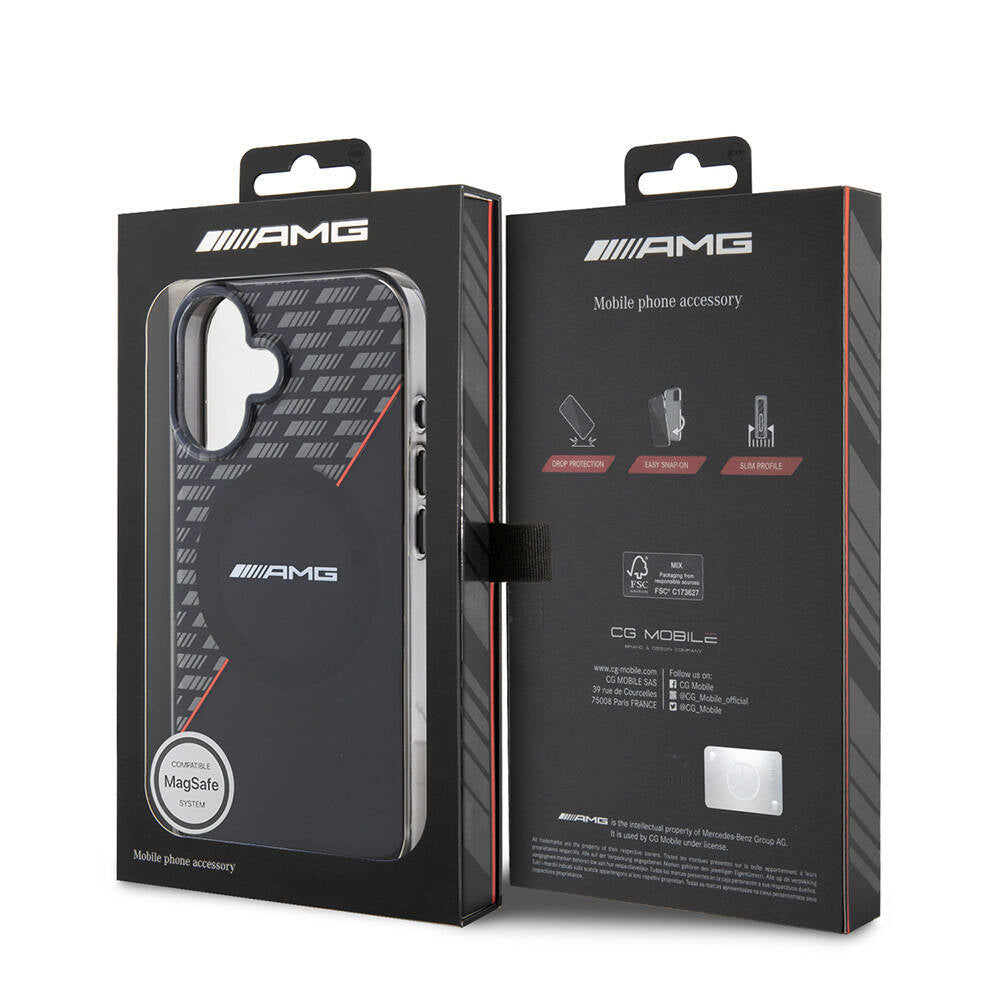 iPhone 16 Kılıf AMG Orjinal Lisanslı Magsafe Şarj Özellikli Çift Katmanlı Kırmızı Çapraz Çizgili Kapak