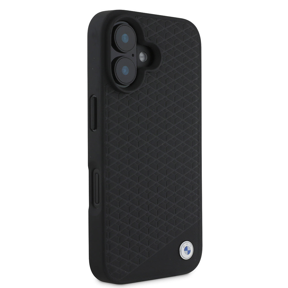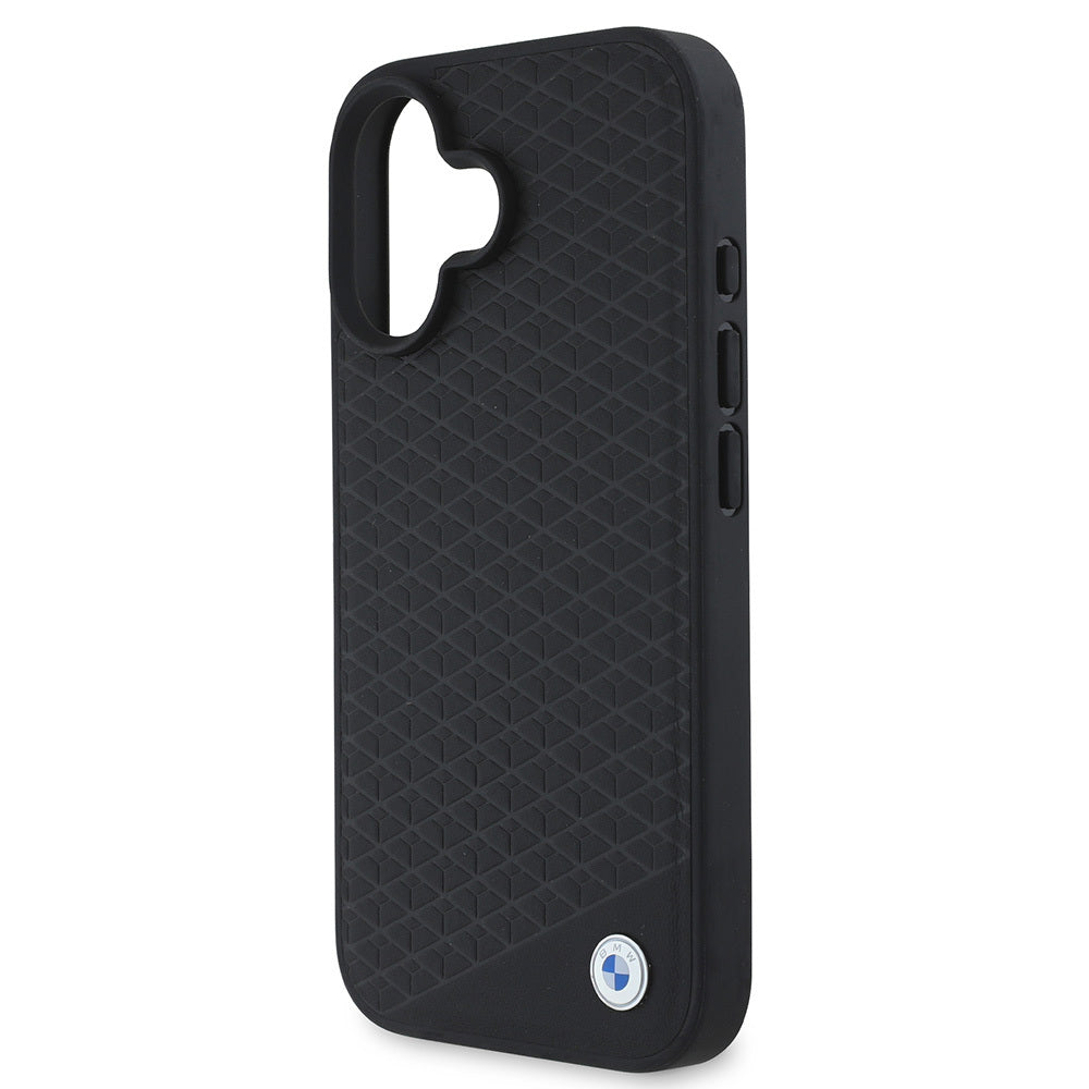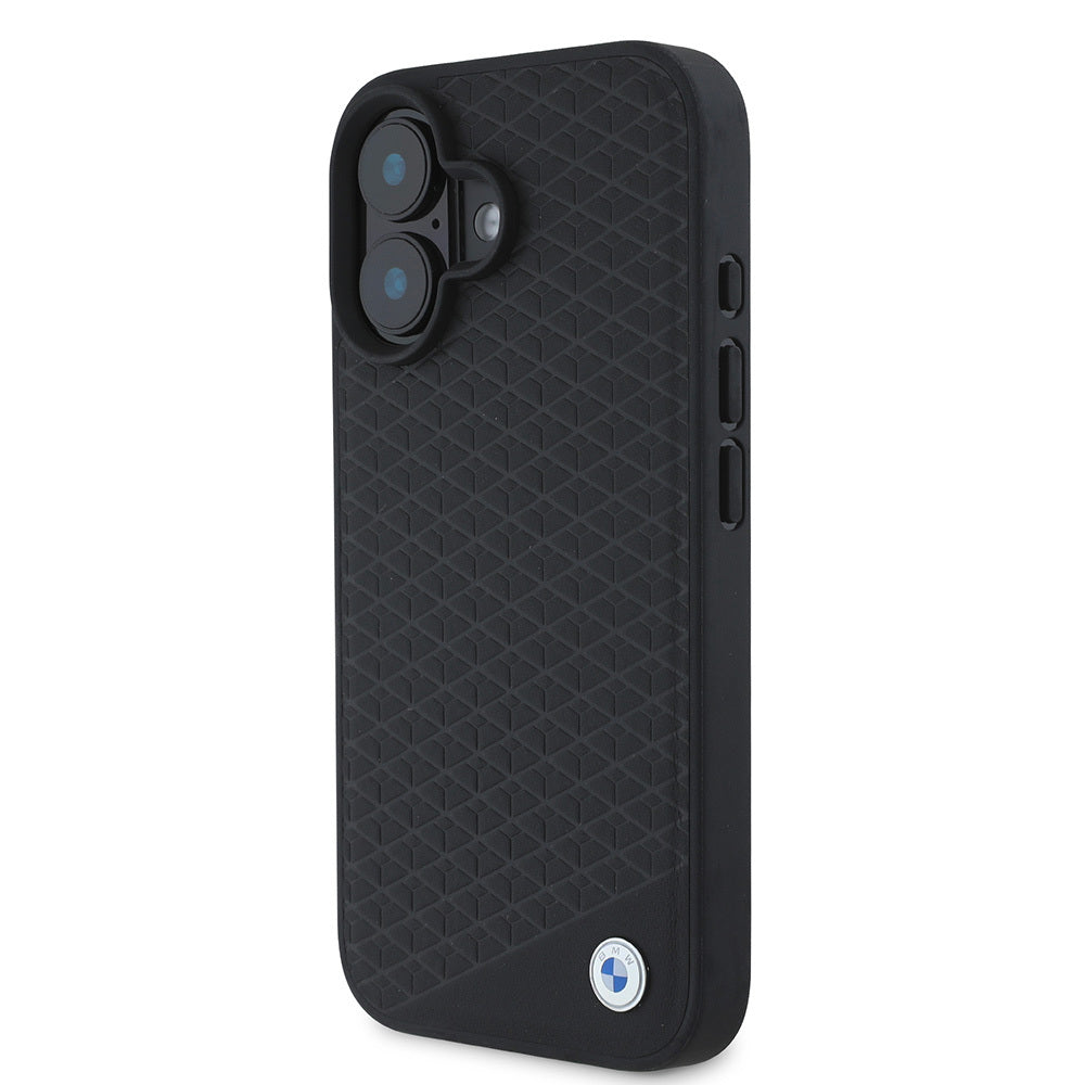 Apple iPhone 16 Kılıf BMW Orjinal Lisanslı Magsafe Şarj Özellikli Metal Logolu Dokulu Diamond Deri Kapak Siyah