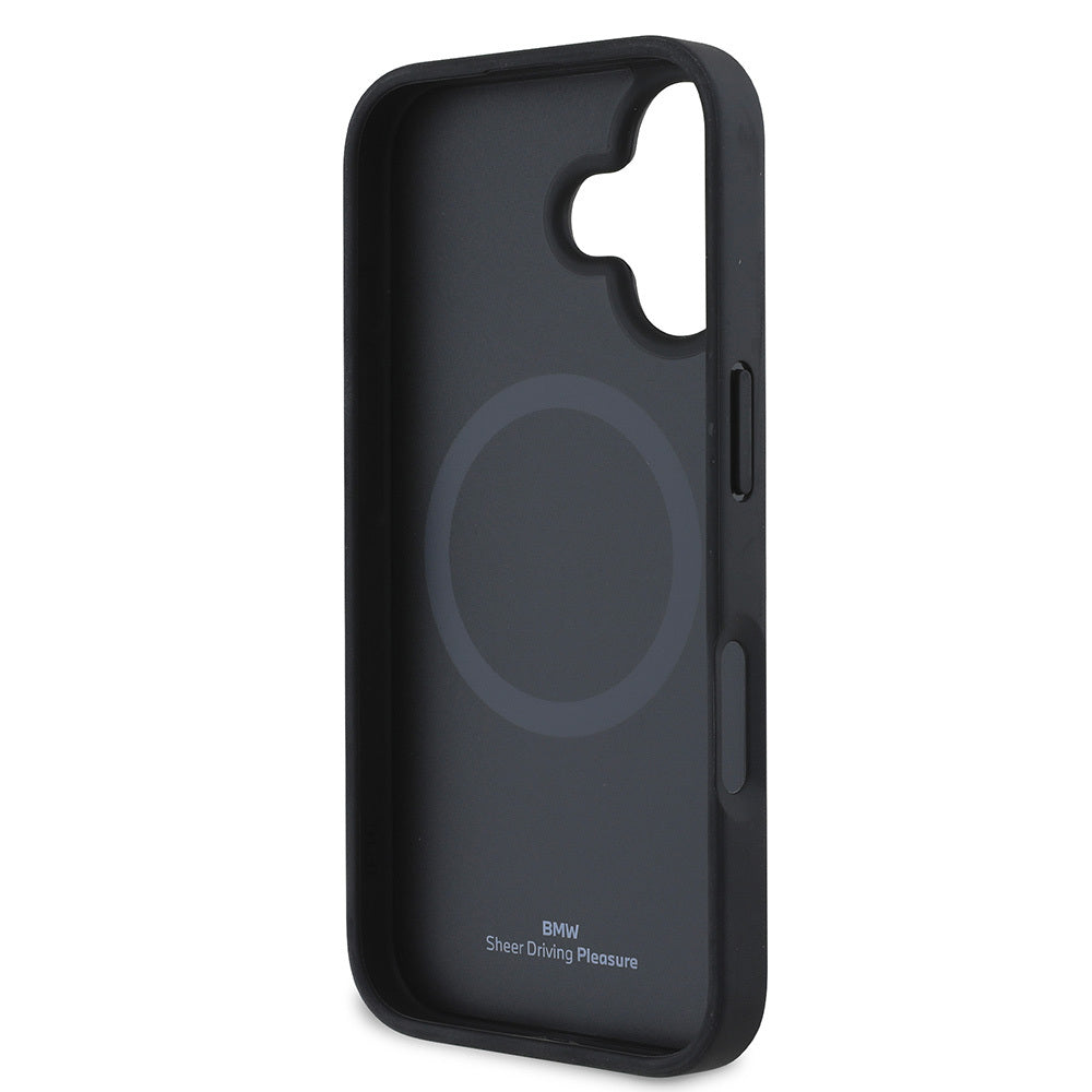 iPhone 16 Kılıf BMW Orjinal Lisanslı Magsafe Şarj Özellikli Metal Logolu Dokulu Diamond Deri Kapak