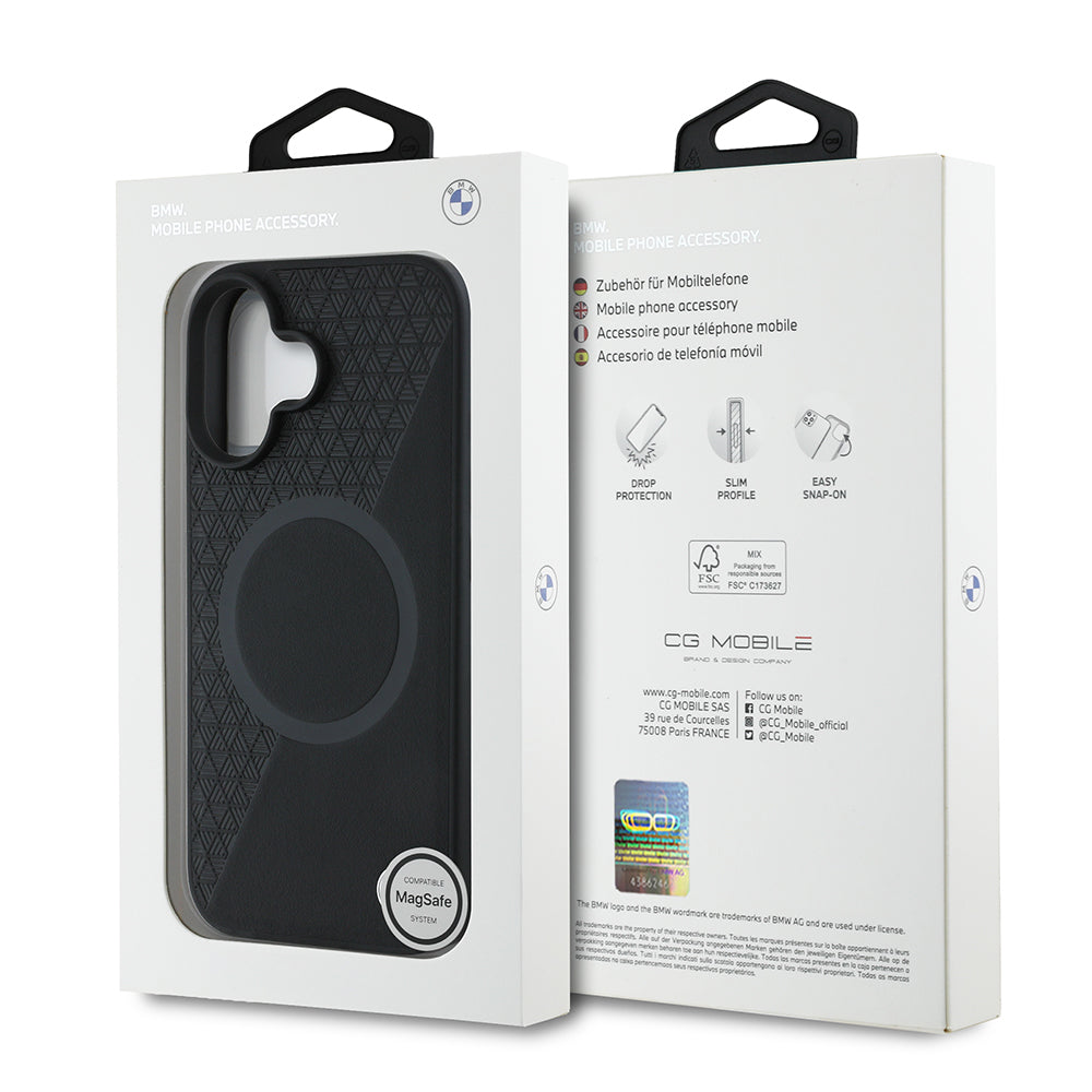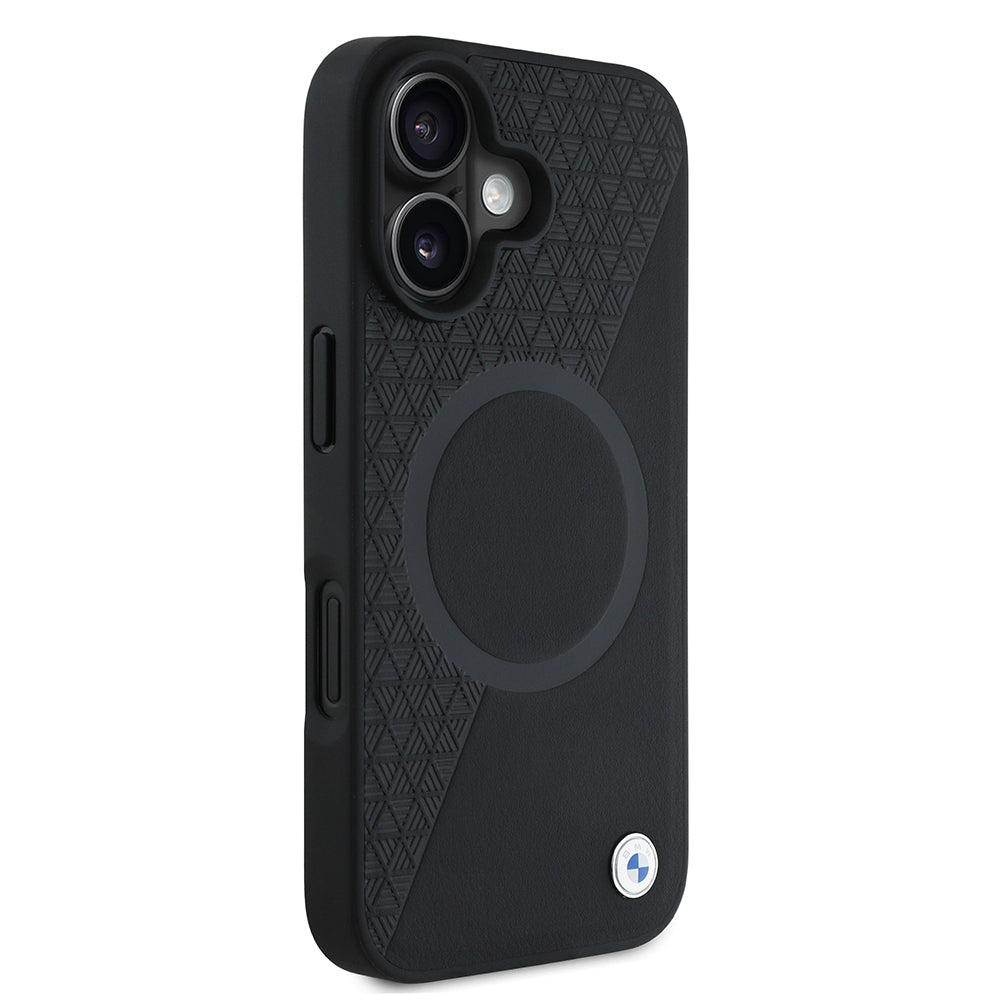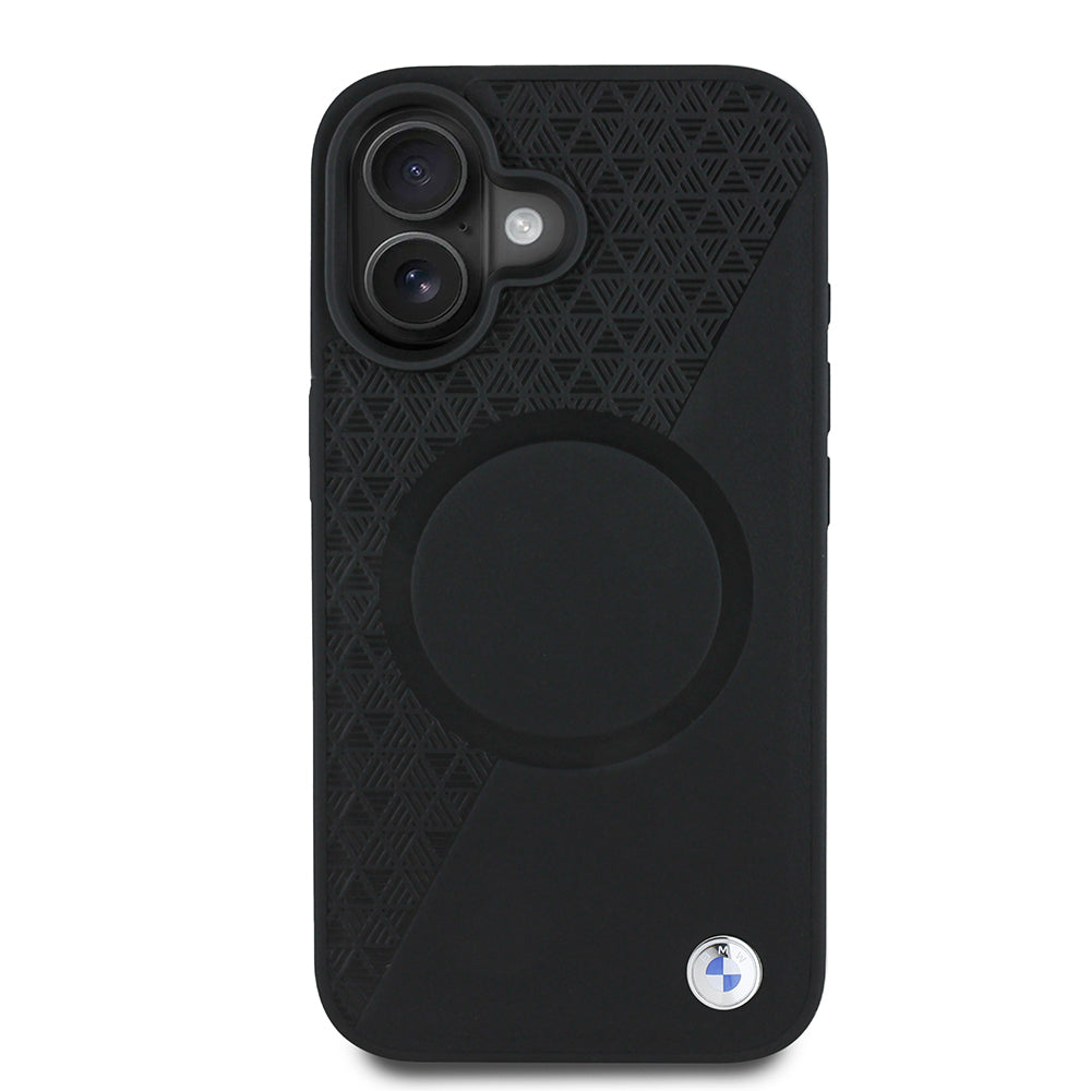 Apple iPhone 16 Kılıf BMW Orjinal Lisanslı M-safe Şarj Özellikli Metal Logolu Yarım Dokulu Circle Deri Kapak Siyah