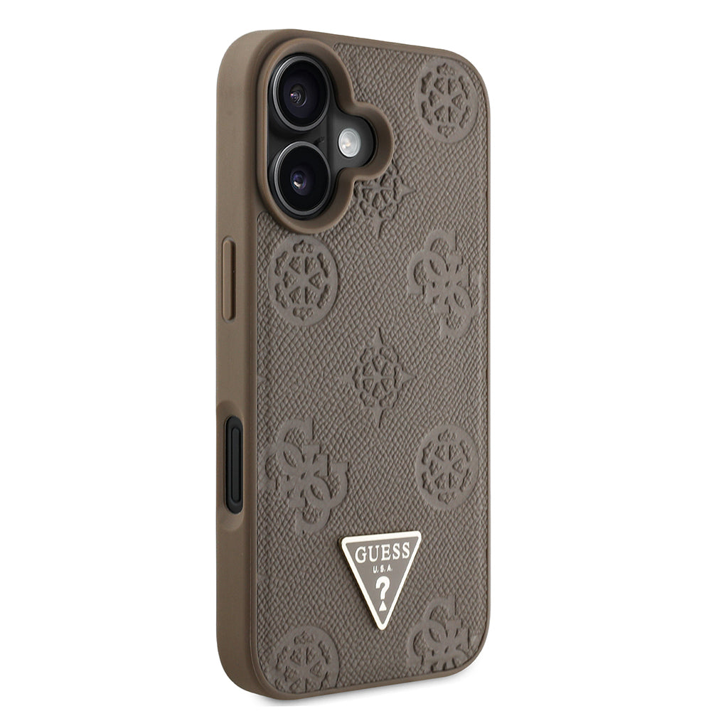 iPhone 16 Kılıf Guess Orjinal Lisanslı Magsafe Şarj Özellikli Sıcak Baskılı Üçgen Logolu PU Deri Peony Kapak