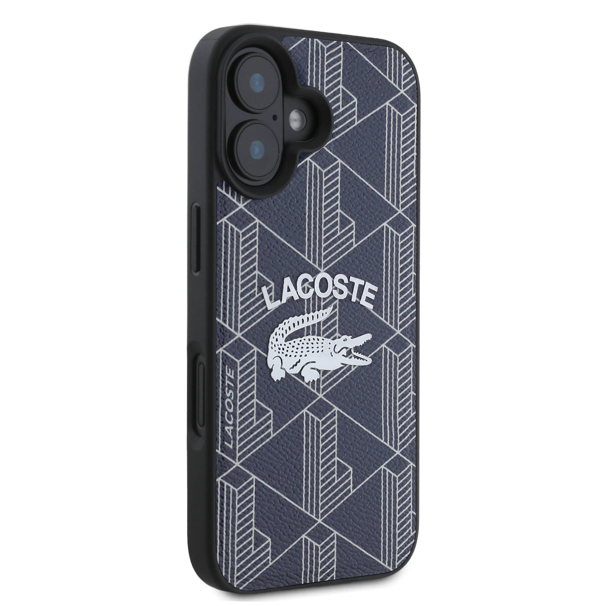 Apple iPhone 16 Kılıf Lacoste Orjinal Lisanslı Magsafe Şarj Özellikli Mono Vintage Logo Kapak Lacivert
