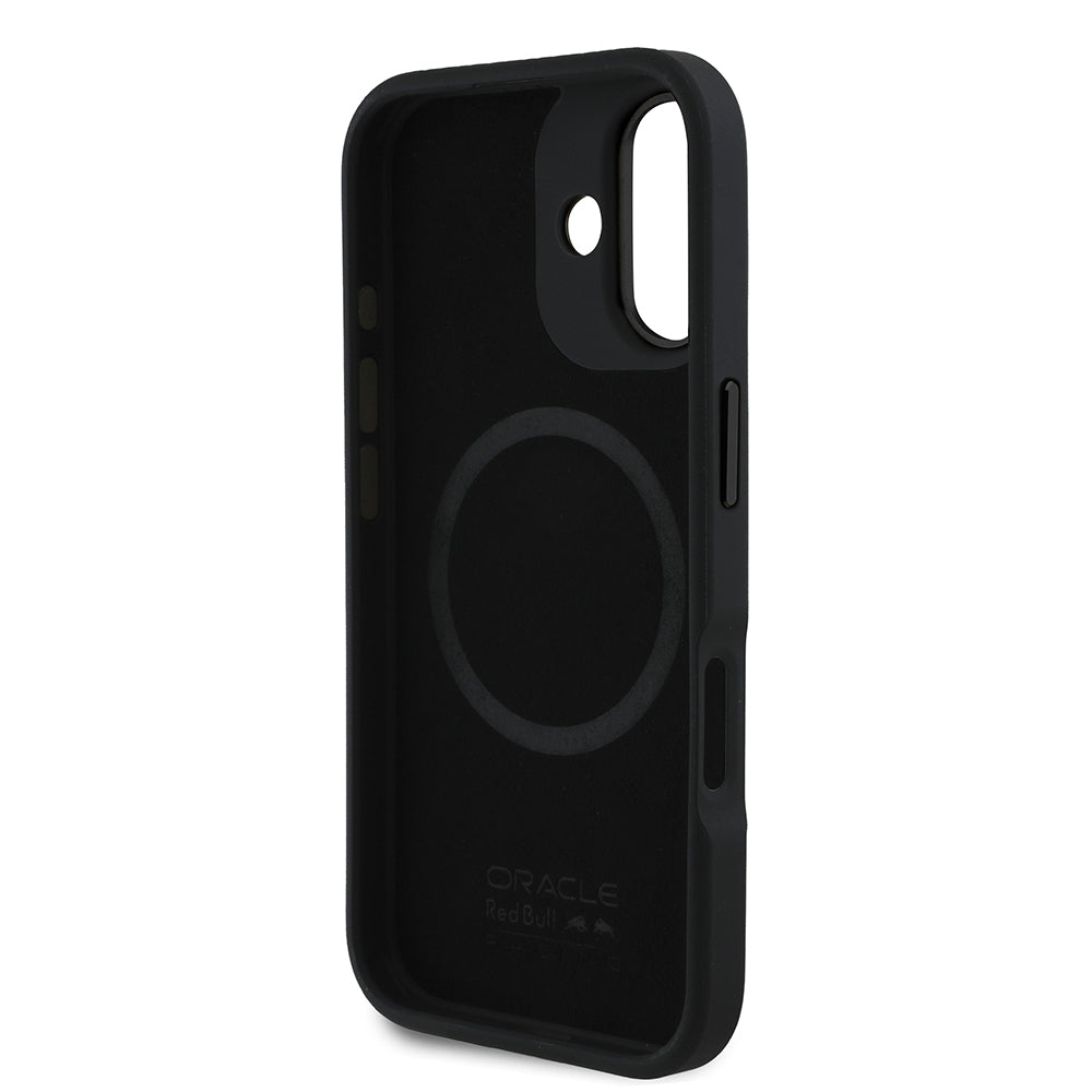 iPhone 16 Plus Kılıf Redbull Orjinal Lisanslı Magsafe Şarj Özellikli Kırmızı Halka ve Logo Kabartmalı PU Deri Kapak