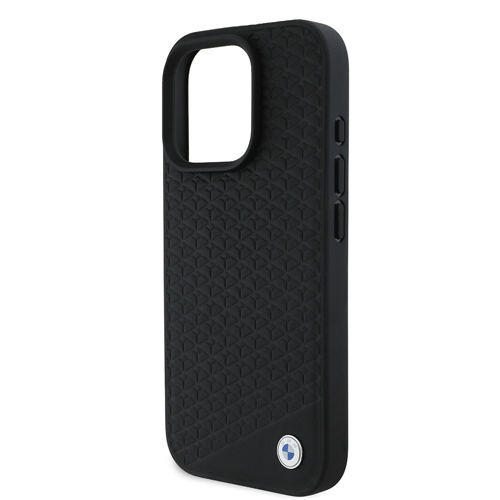 Apple iPhone 16 Pro Kılıf BMW Orjinal Lisanslı Magsafe Şarj Özellikli Metal Logolu Dokulu Diamond Deri Kapak Siyah