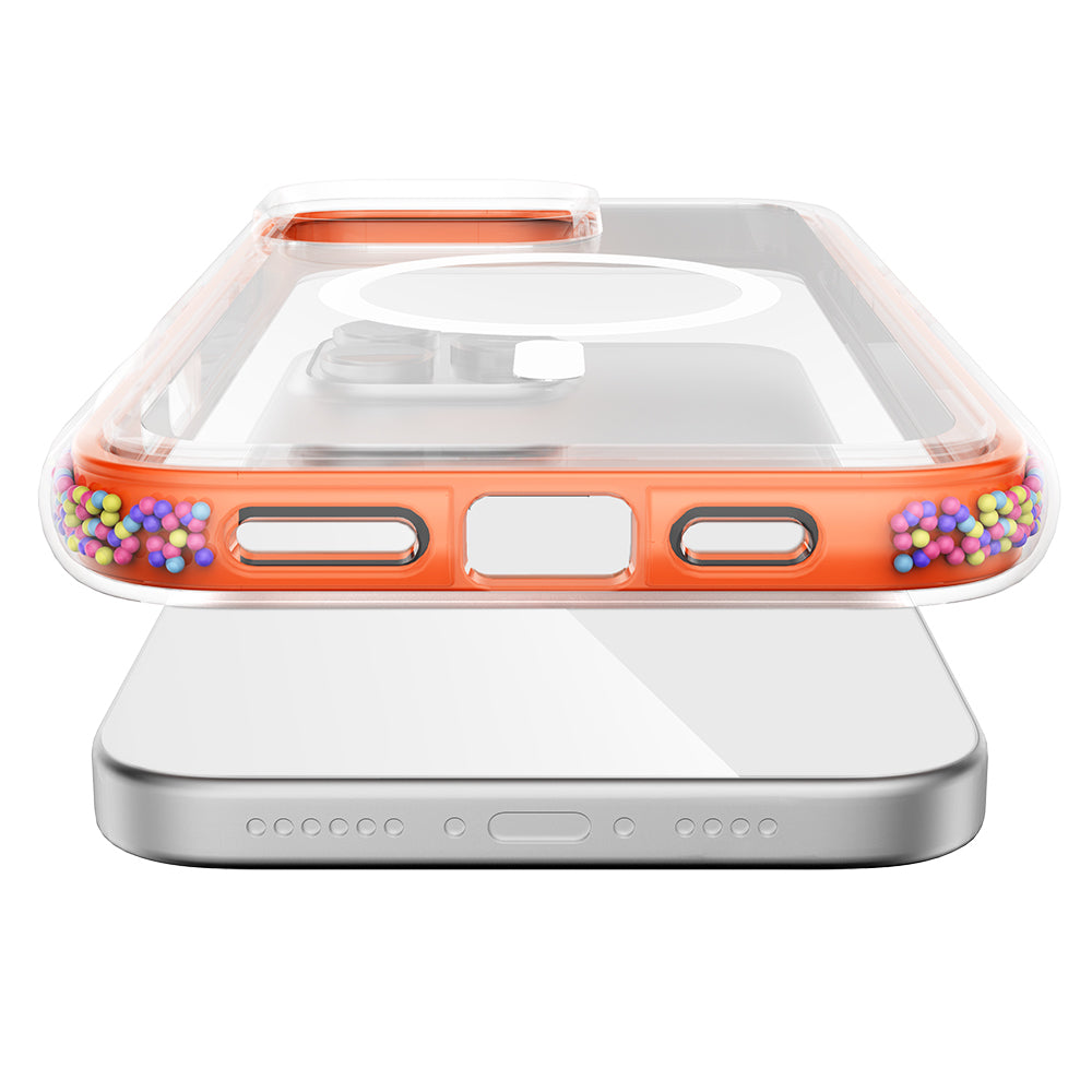 Apple iPhone 16 Pro Kılıf Magsafe Şarj Özellikli Raptic AirJoy Serisi Boncuk Tasarımlı Şeffaf Kapak Turuncu