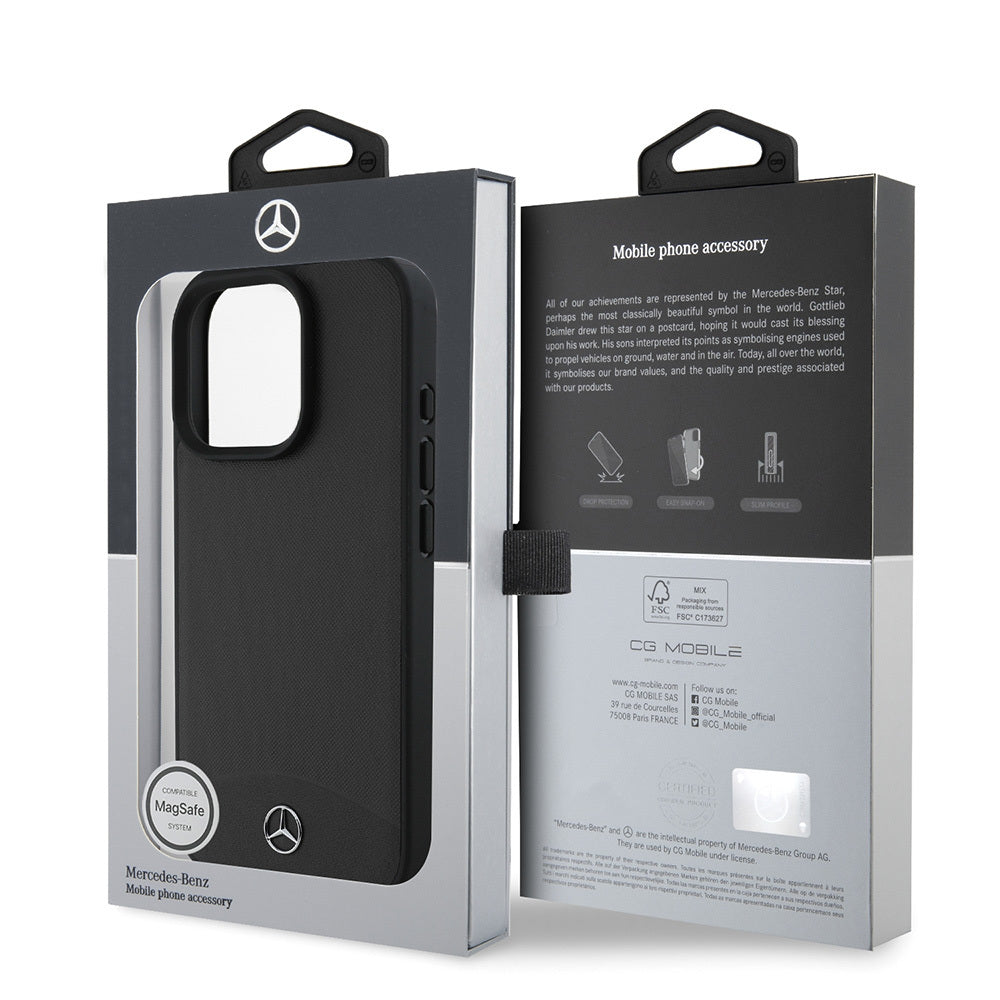 Apple iPhone 16 Pro Kılıf Mercedes Benz Orjinal Lisanslı Magsafe Şarj Özellikli Dokulu ve Düz Deri Kapak Siyah