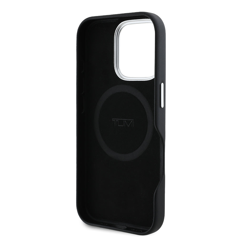 Apple iPhone 16 Pro Kılıf TUMI Orjinal Lisanslı M-safe Şarj Özellikli Metal Yazı Logolu PU Deri Kapak Siyah
