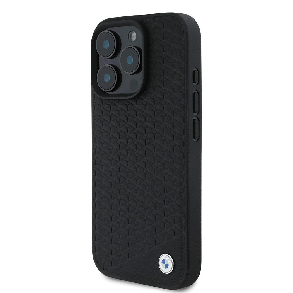 iPhone 16 Pro Max Kılıf BMW Orjinal Lisanslı Magsafe Şarj Özellikli Metal Logolu Dokulu Diamond Deri Kapak