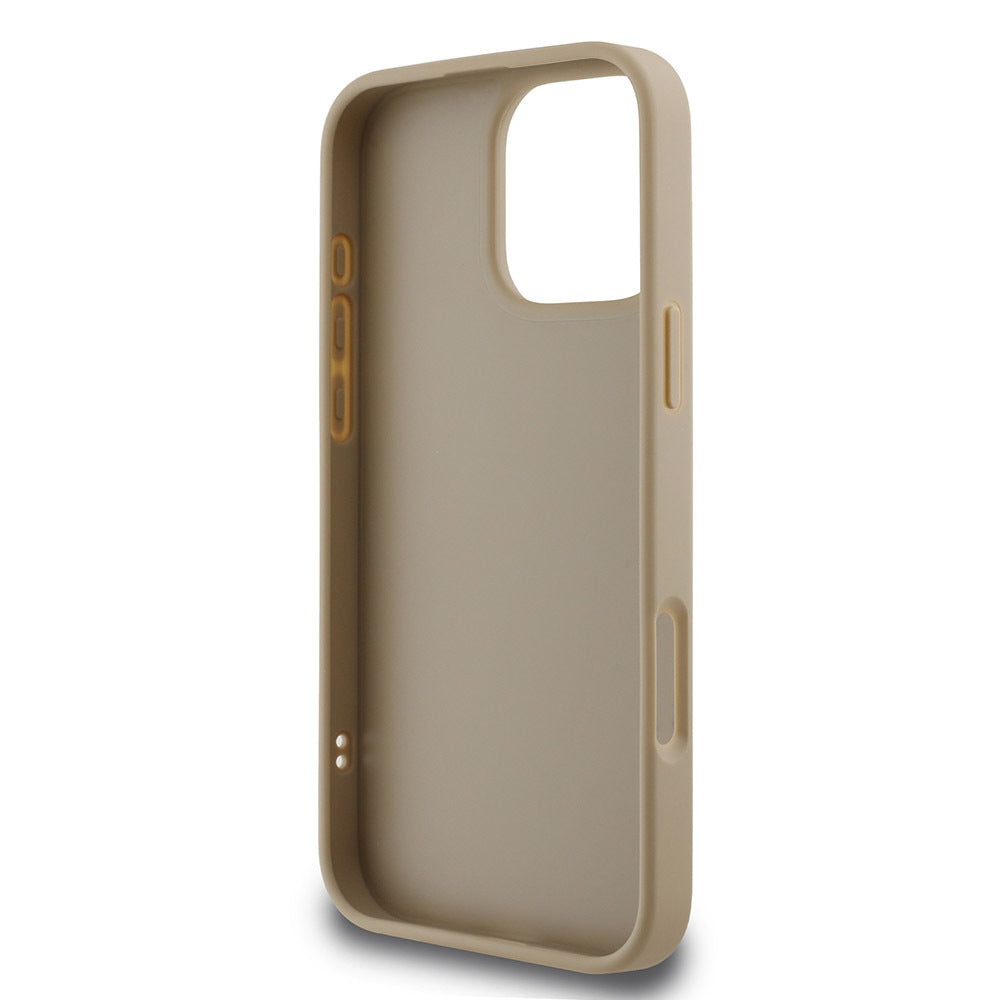 Apple iPhone 16 Pro Max Kılıf DKNY Orjinal Lisanslı Kapitone Tasarımlı Metal Logolu Deri Kapak Bej