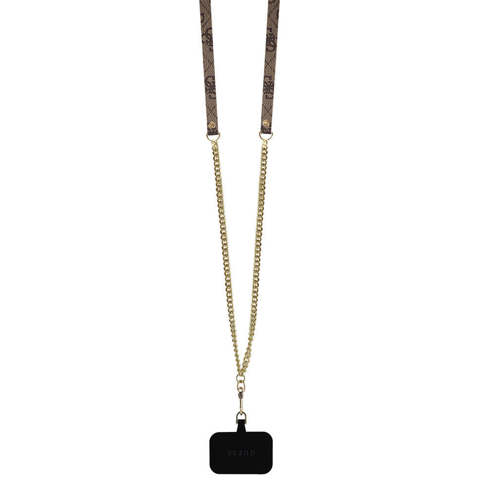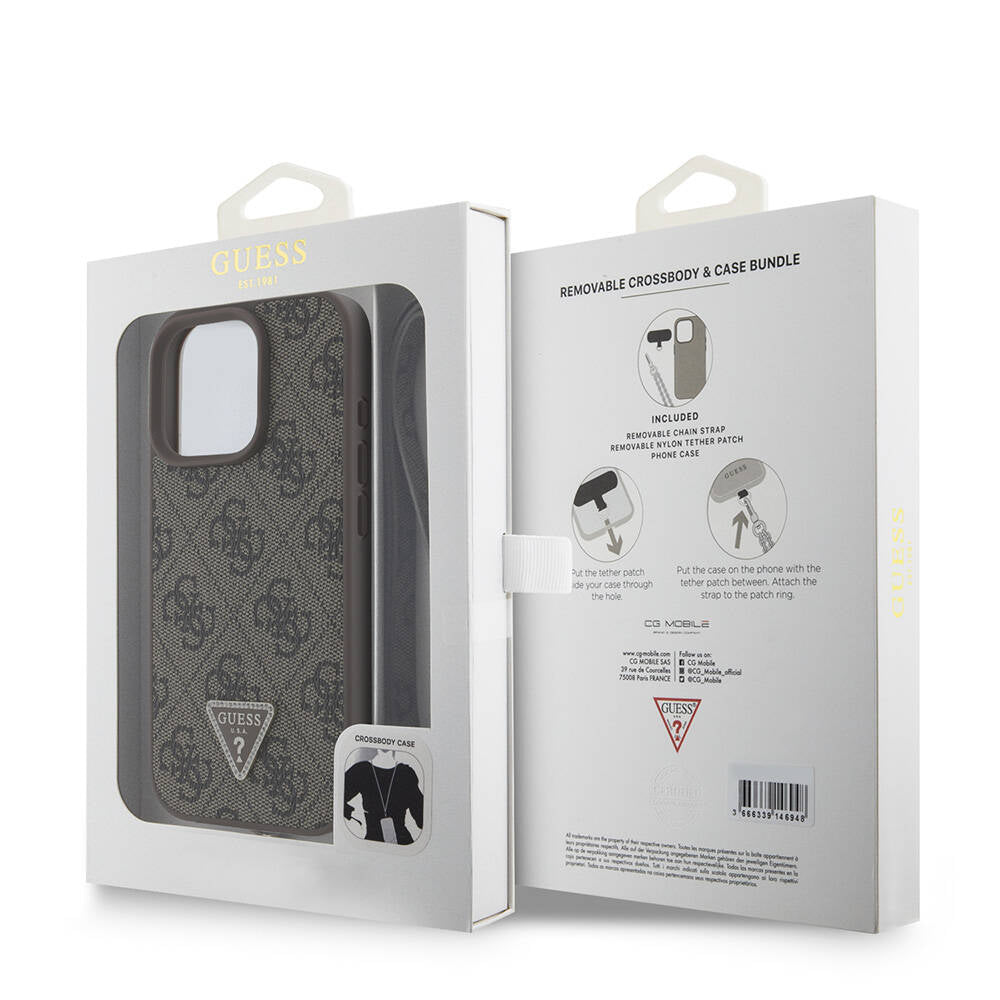 iPhone 16 Pro Max Kılıf Guess Orjinal Lisanslı PU Deri Taşlı Metal Üçgen Logolu Çapraz Vücut Askılı 4G Desenli Kapak