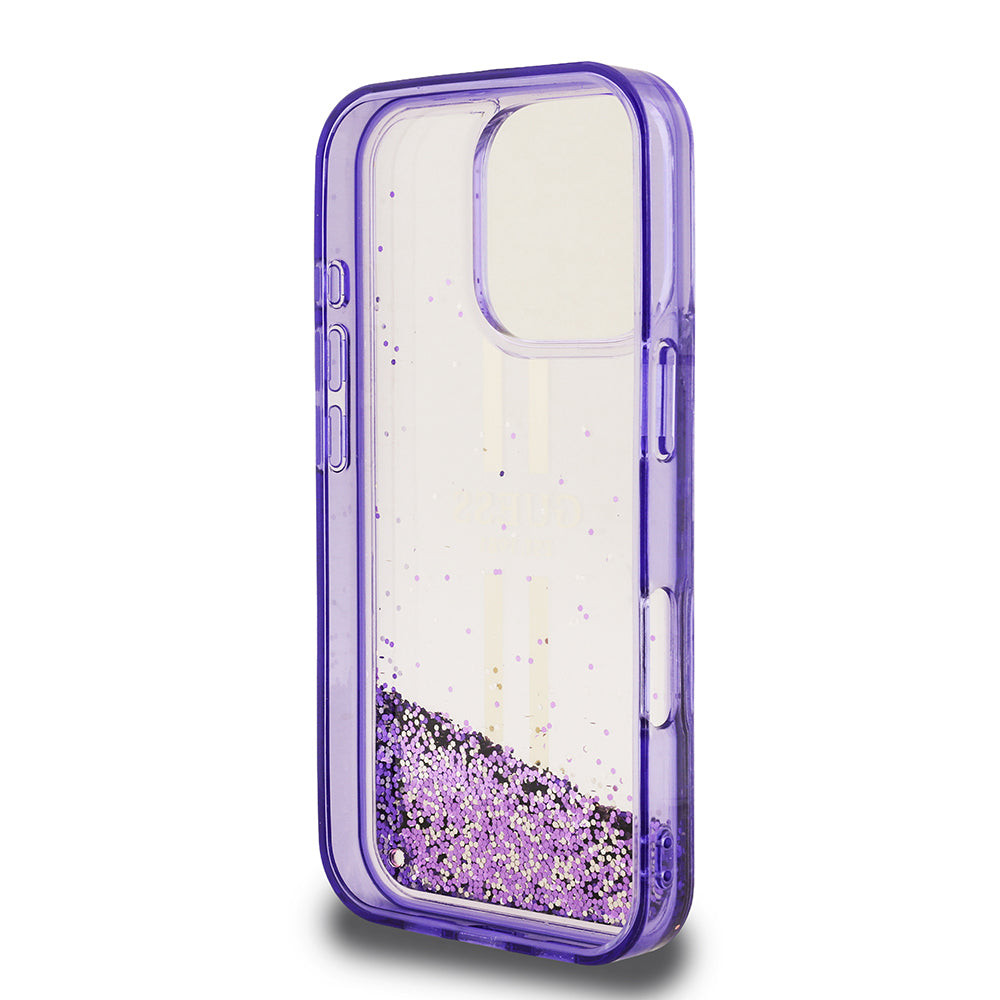 iPhone 16 Pro Max Kılıf Guess Orjinal Lisanslı Transparan Sıvılı Simli Altın Çizgili Kapak