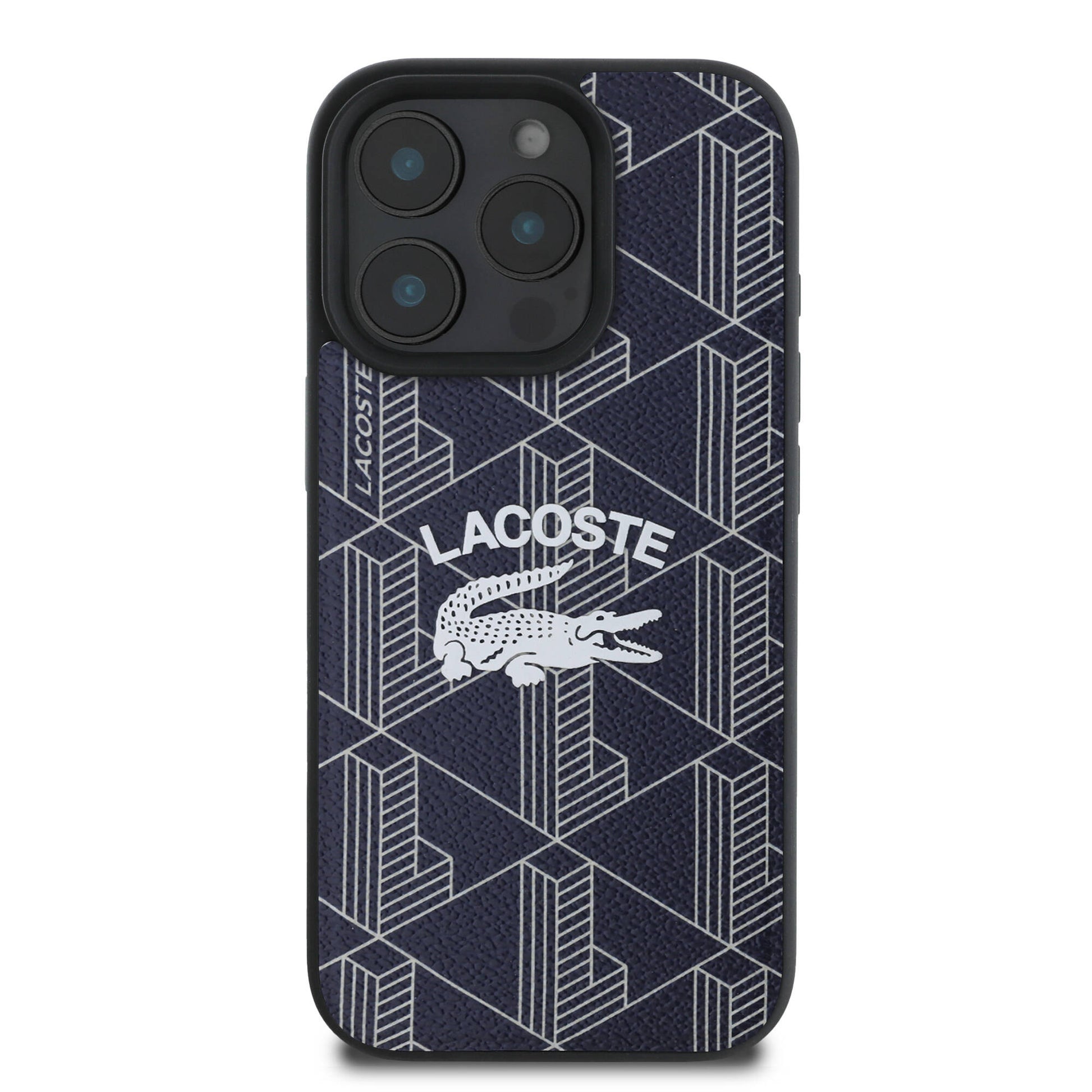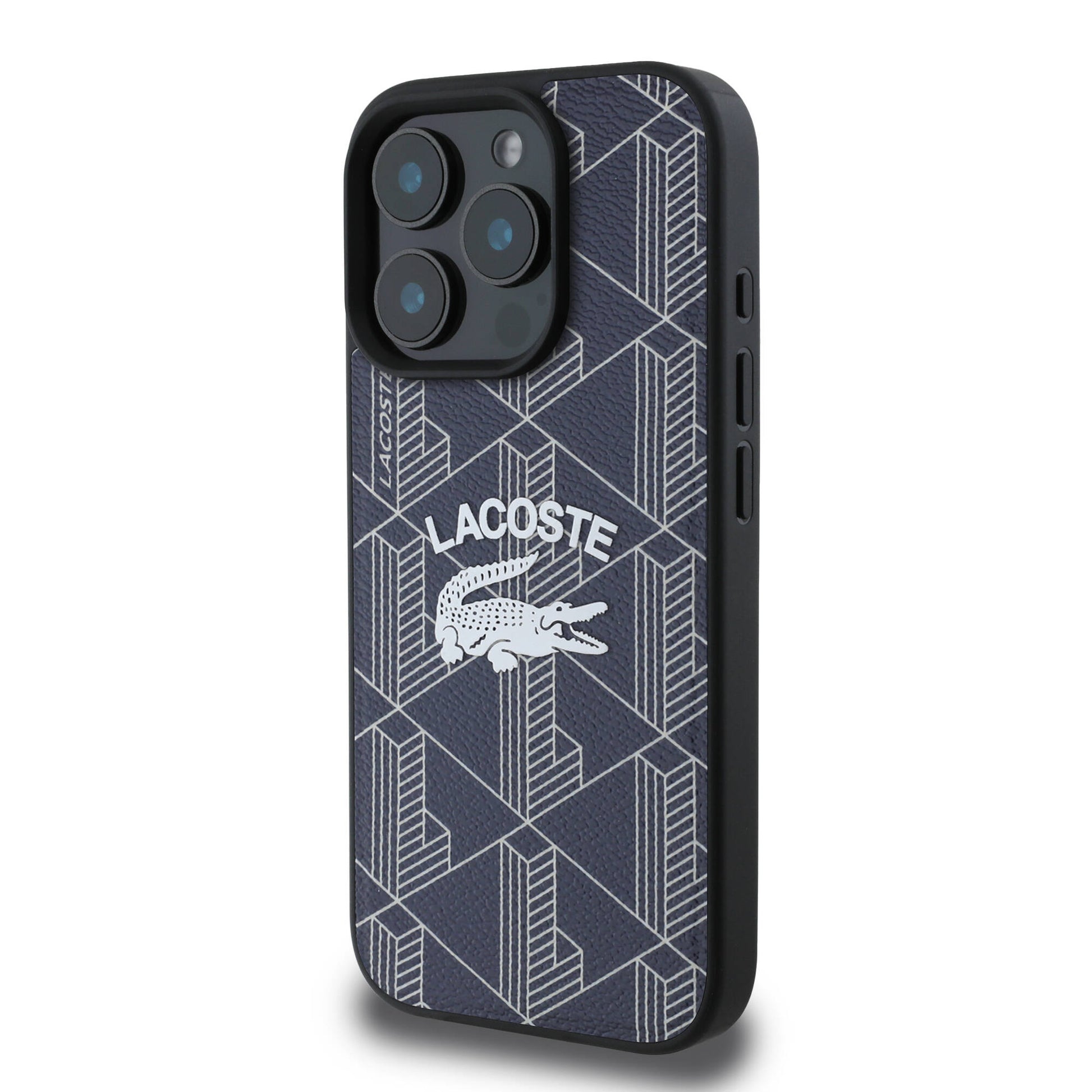 Apple iPhone 16 Pro Max Kılıf Lacoste Orjinal Lisanslı Magsafe Şarj Özellikli Mono Vintage Logo Kapak Lacivert