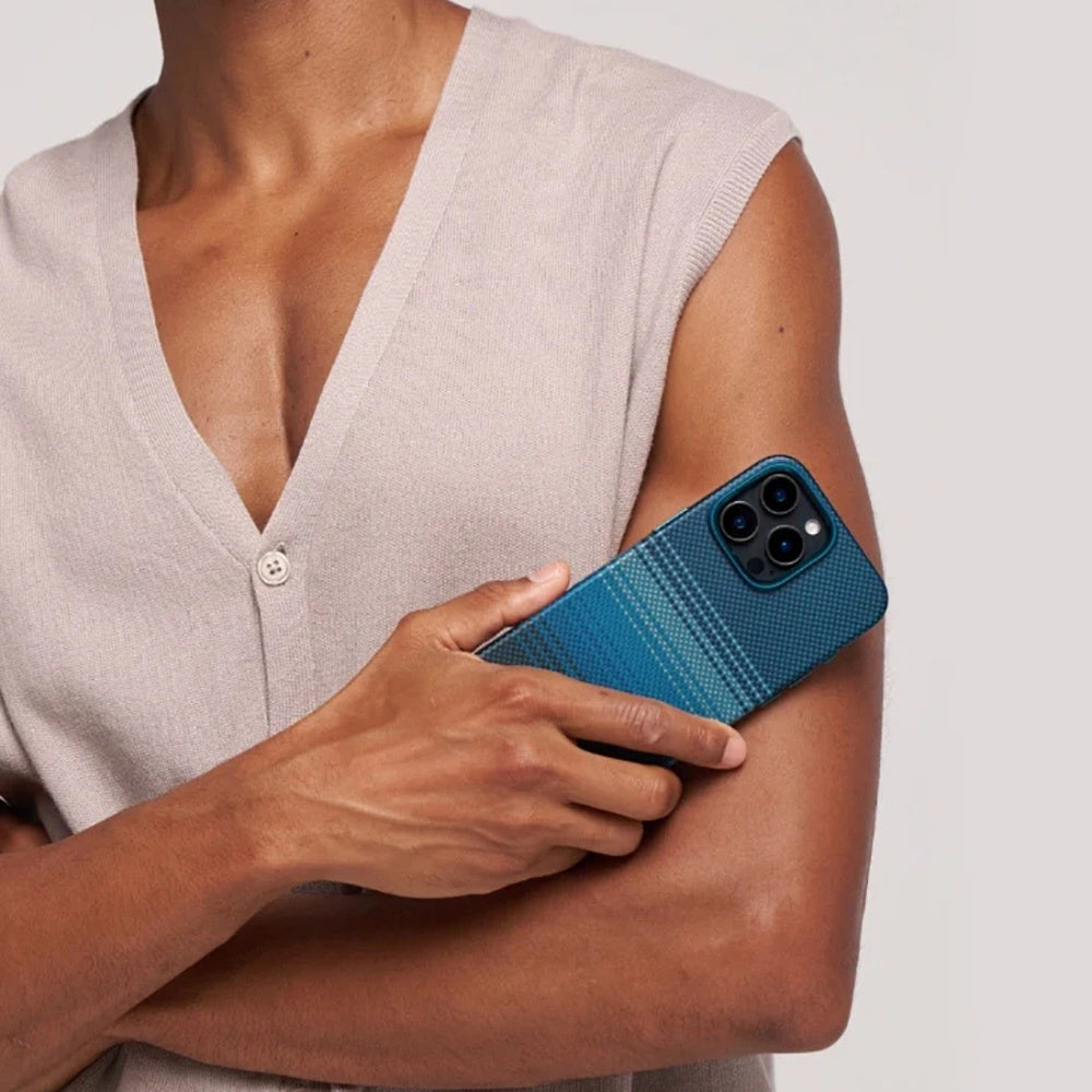 Bu ince dokulu kılıf, aramid fiberin Fusion Weaving teknolojisiyle benzersiz bir dokunuş sunar. Metal düğme kapakları ve alüminyum alaşımlı kamera koruyucusuyla tamamlanmış olup günlük kullanımda hem koruma hem de rahatlık sağlar. Pürüzsüz kenar yapısı ve ince dokusuyla elinize kolayca oturur ve rahatlık sunar.